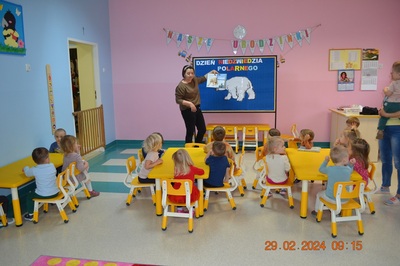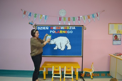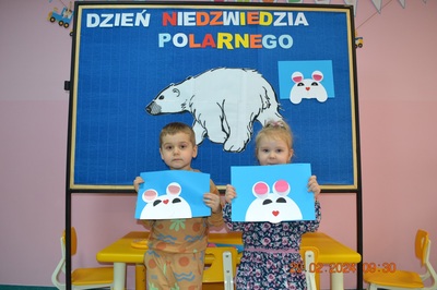 Postanowiliśmy wykorzystać ten dzień do przypomnienia o tym że zmiany klimatu zależą od nas wszystkich i że los niedźwiedzia polarnego i jego sąsiadów leży w naszych rękach. Na sam koniec zajęć dzieci wykonały podobiznę bohatera dnia ,obejrzały film edukacyjny.