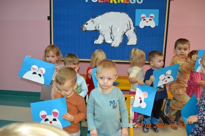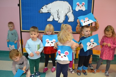 Dlatego w ten dzień dzieci zapoznały się z wyglądem , zachowaniem i sposobem życia niedźwiedzia polarnego , również maluchy poznały zagrożenie czyhające na niedźwiedzie polarne zmiany klimatyczne prowadzące do zanikania pokrywy lodowej Arktyki.