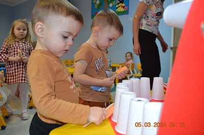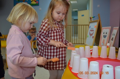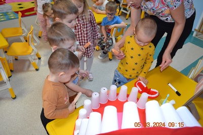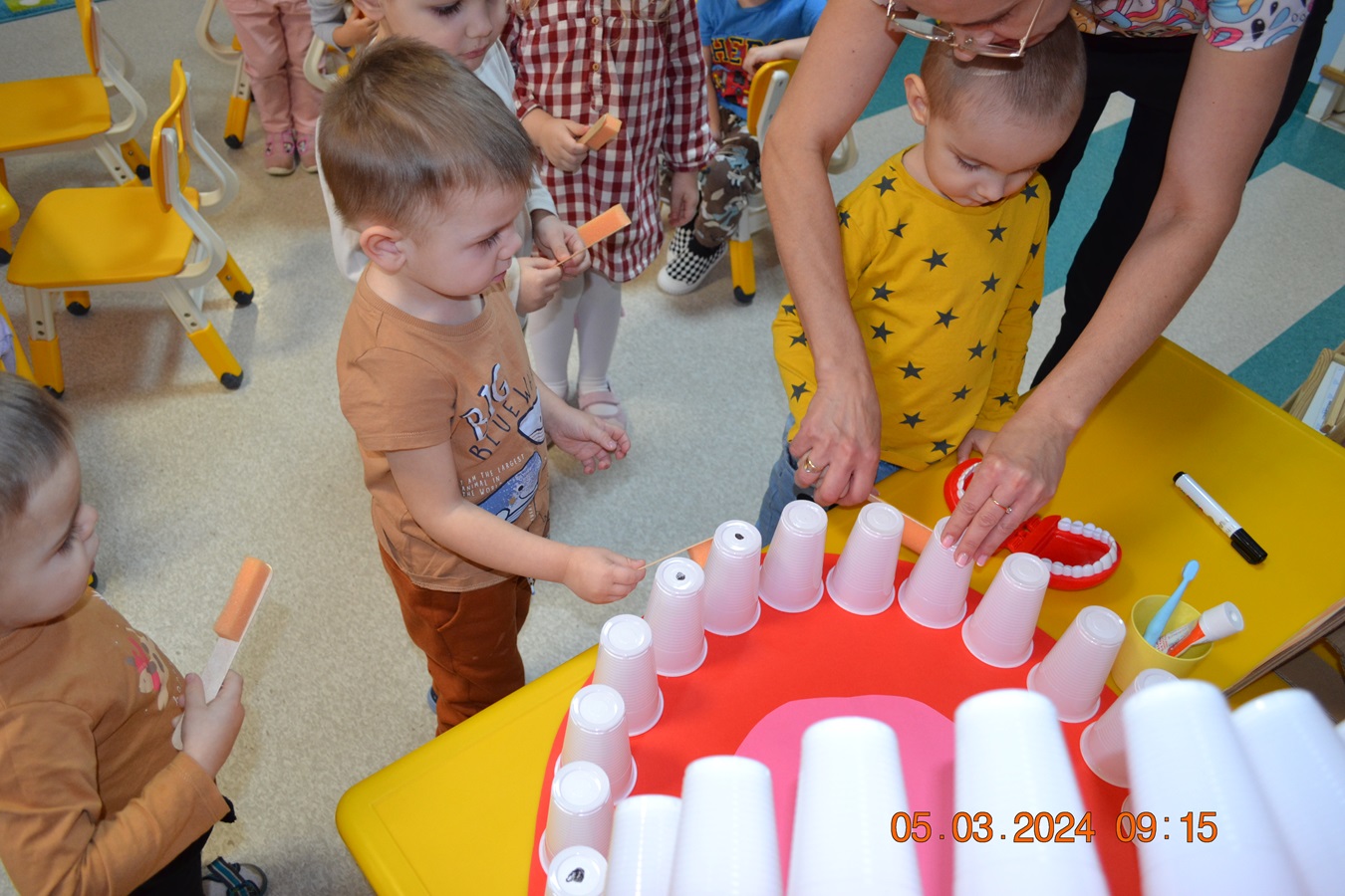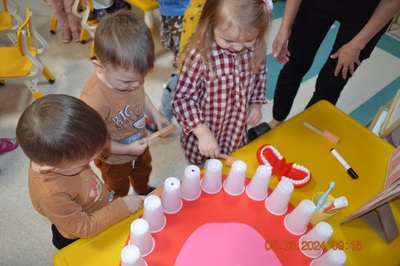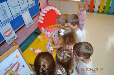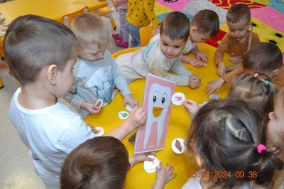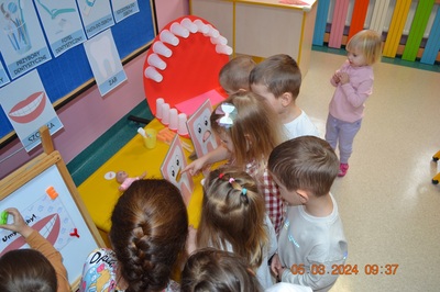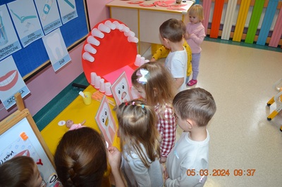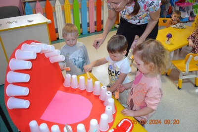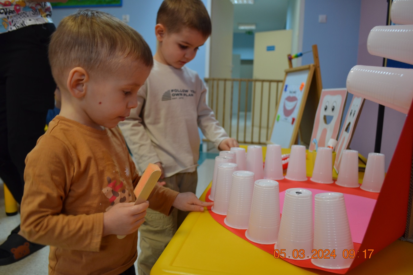 Dnia 5 marca obchodziliśmy w naszym klubiku "Dzień Dentysty". Maluszki miały okazję dowiedzieć się jak dbać o higienę jamy ustnej, aby ząbki były zawsze zdrowe, a uśmiech błyszczał czystością. Zwrócono także uwagę dzieci na etapy mycia zębów oraz na systematyczne kontrolowanie stanu uzębienia. Podkreślono jak ważna dla zdrowych zębów jest dieta bogata w owoce i warzywa oraz produkty mleczne. Dzieci dowiedziały się również (choć z wielkim smutkiem), że słodycze mają negatywny wpływ na nasze zęby. Po tym dniu maluszki wiedzą co to jest próchnica, co ją powoduje oraz jak jej zapobiegać Prowadzenie tego typu działań edukacyjnych ma na celu wdrożenie dzieci do codziennego szczotkowania zębów i dbania o higienę jamy ustnej ale również niwelowanie lęku i strachu przed wizytą u stomatologa. Na zakończenie dzieci wykonały pracę plastyczną przedstawiająca czyste i błyszczące zęby.