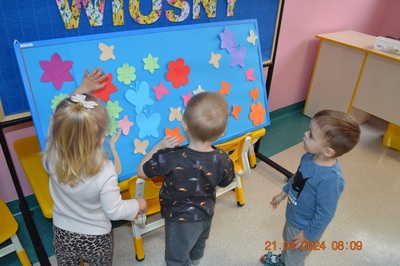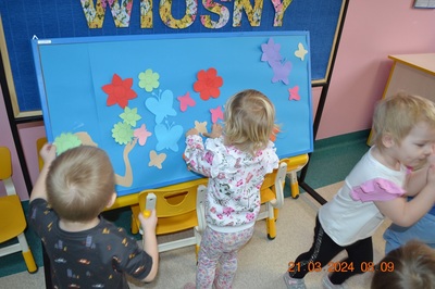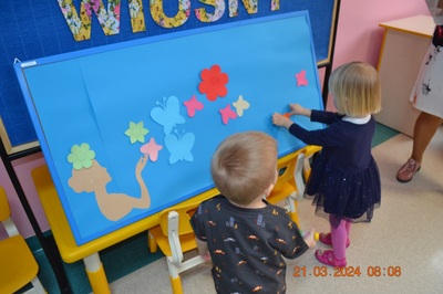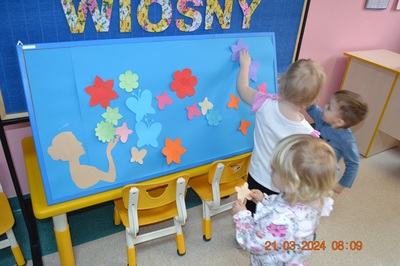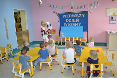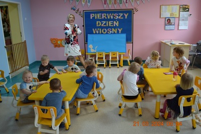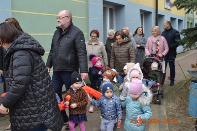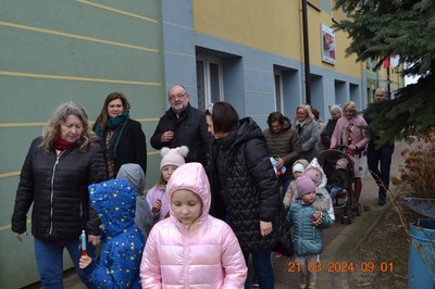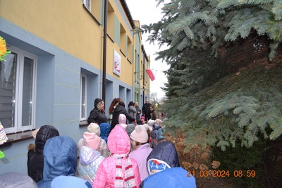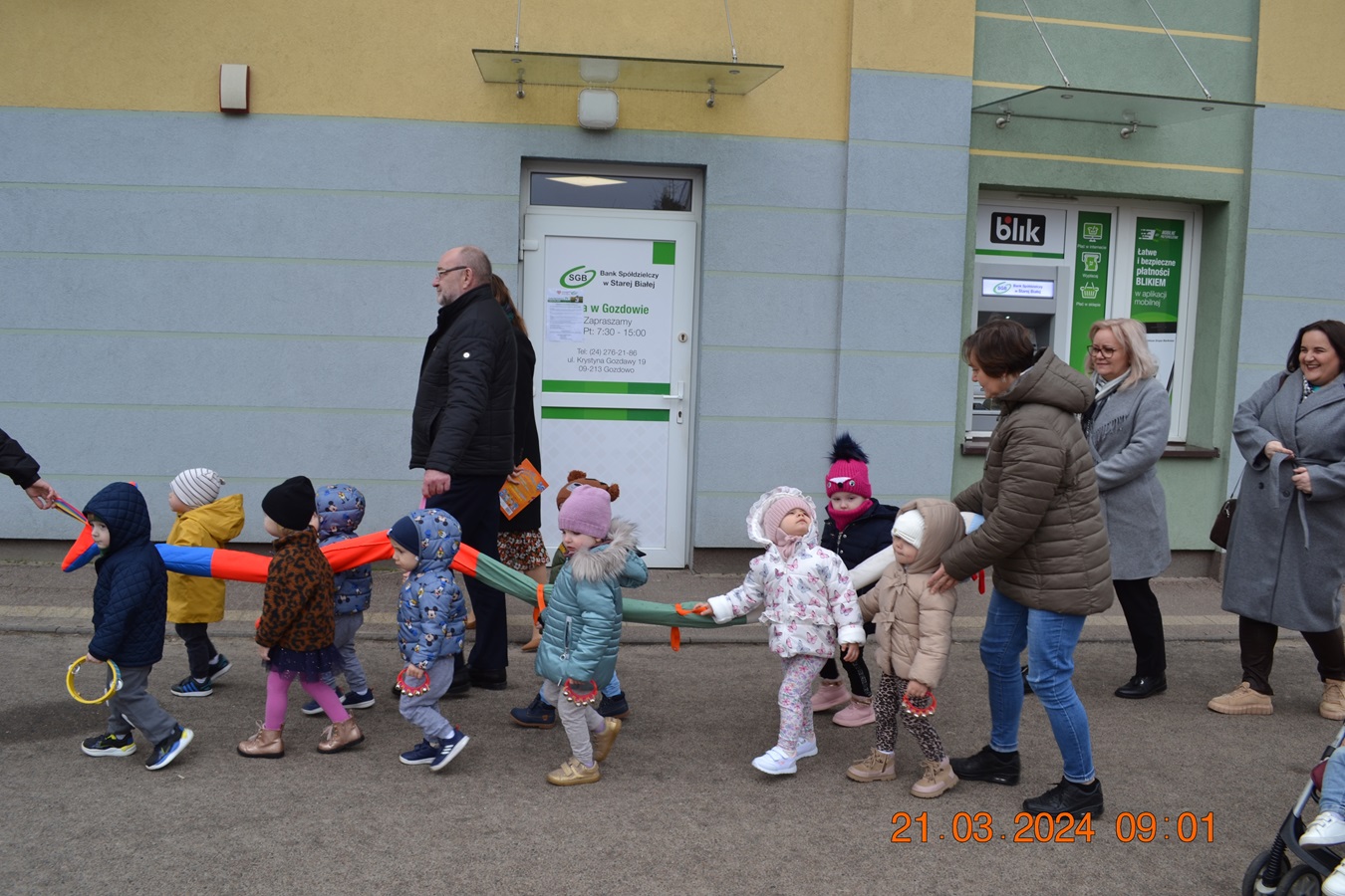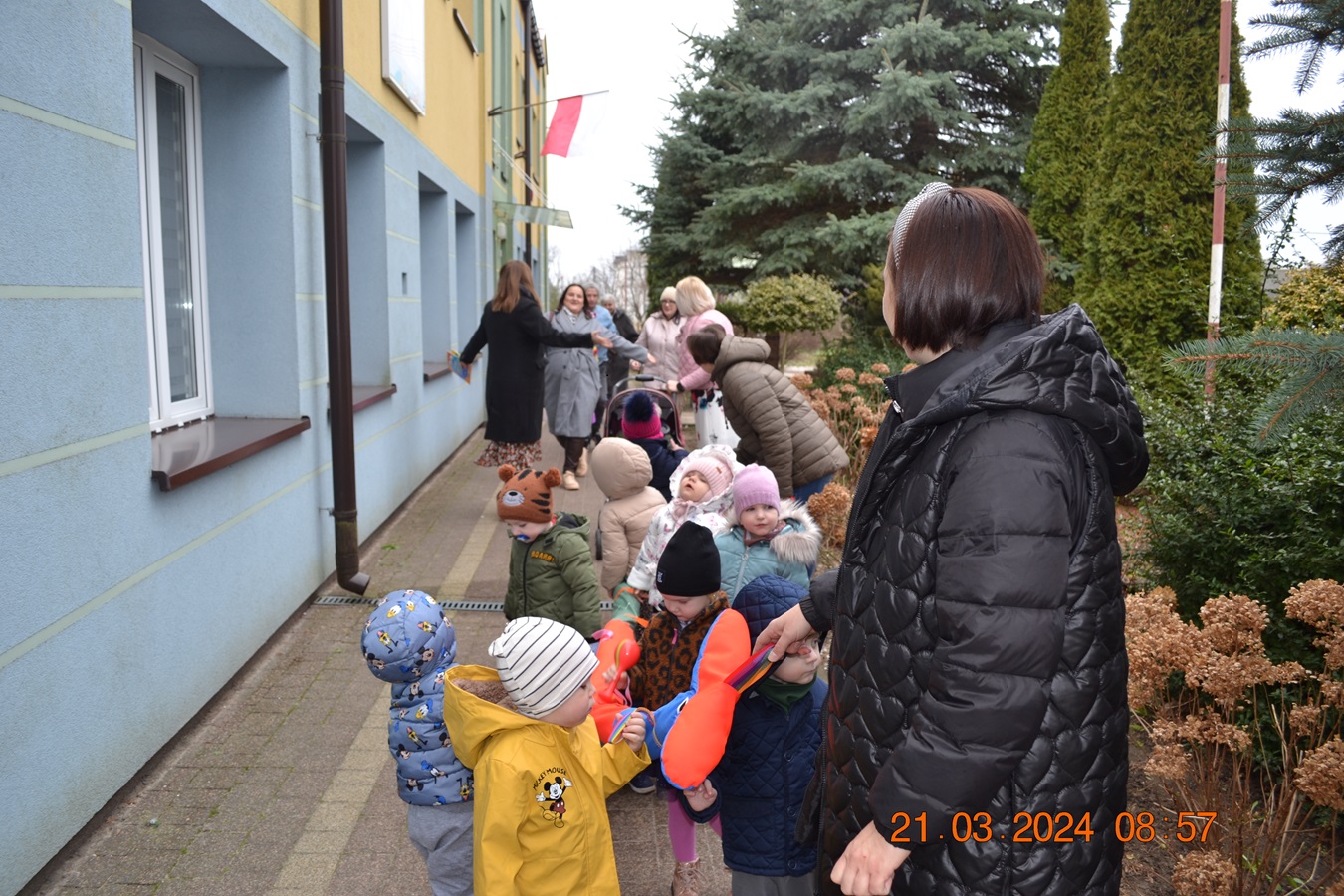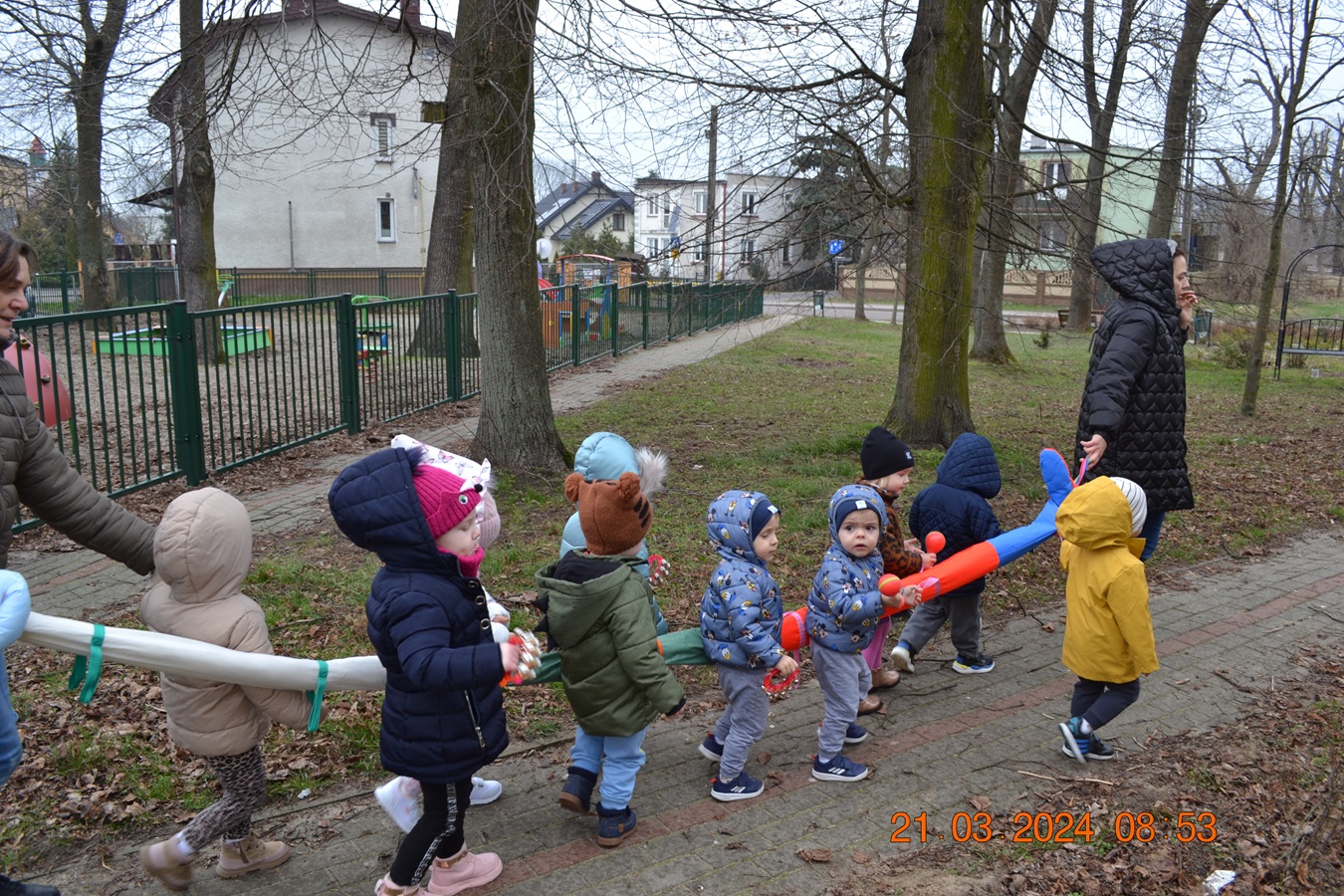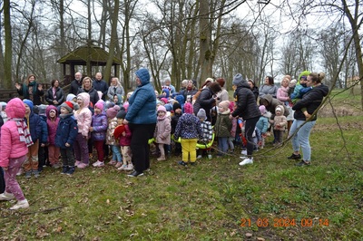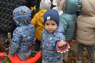 21 marca wspólnie z ciociami z biblioteki, Panem Wójtem, kolegami i koleżankami z przedszkola zgodnie z tradycją udało się nam utopić Marzannę w naszym parku. Nawet padający leciutko deszczyk nie zepsuł naszych planów. Było nas dużo, a dodatkowo, żeby szybciej zima odeszła zabraliśmy ze sobą instrumenty muzyczne i głośno żegnaliśmy odchodzącą porę roku, żeby szybko i bez ociągania przyszła do nas wiosna. Dzieci radośnie maszerowały w wiosennym korowodzie na czele którego widniała Marzanna, którą następnie pożegnaliśmy według tradycji. Wierzymy, że nasze wspólne starania sprawią, że wiosna obudzi ze snu wszystkie kwiatki, drzewka i ptaszki. Zrobi się już ciepło, dni będą coraz dłuższe, a świat będzie bardziej kolorowy. Zwierzątka, które przespały zimę, opuszczą swoje kryjówki i zrobi się już radośnie.
