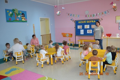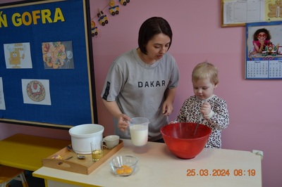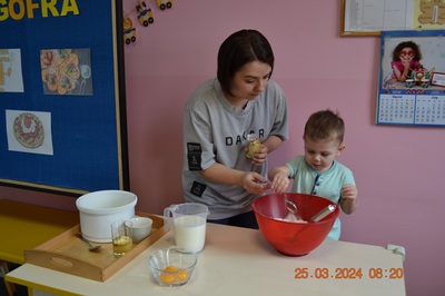 25 marca mali klubowicze świętowali dzień gofra , po zapoznaniu z przepisem , pod okiem cioć przystąpiły do działania. Odmierzały składniki, wsypywały do miski , miksowały a następnie dekorowały , według własnych upodobań i kosztowały. Gofry wyszły znakomite , a mali kucharze spisali się na medal.