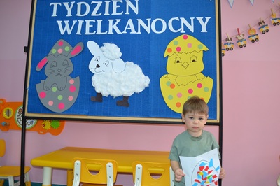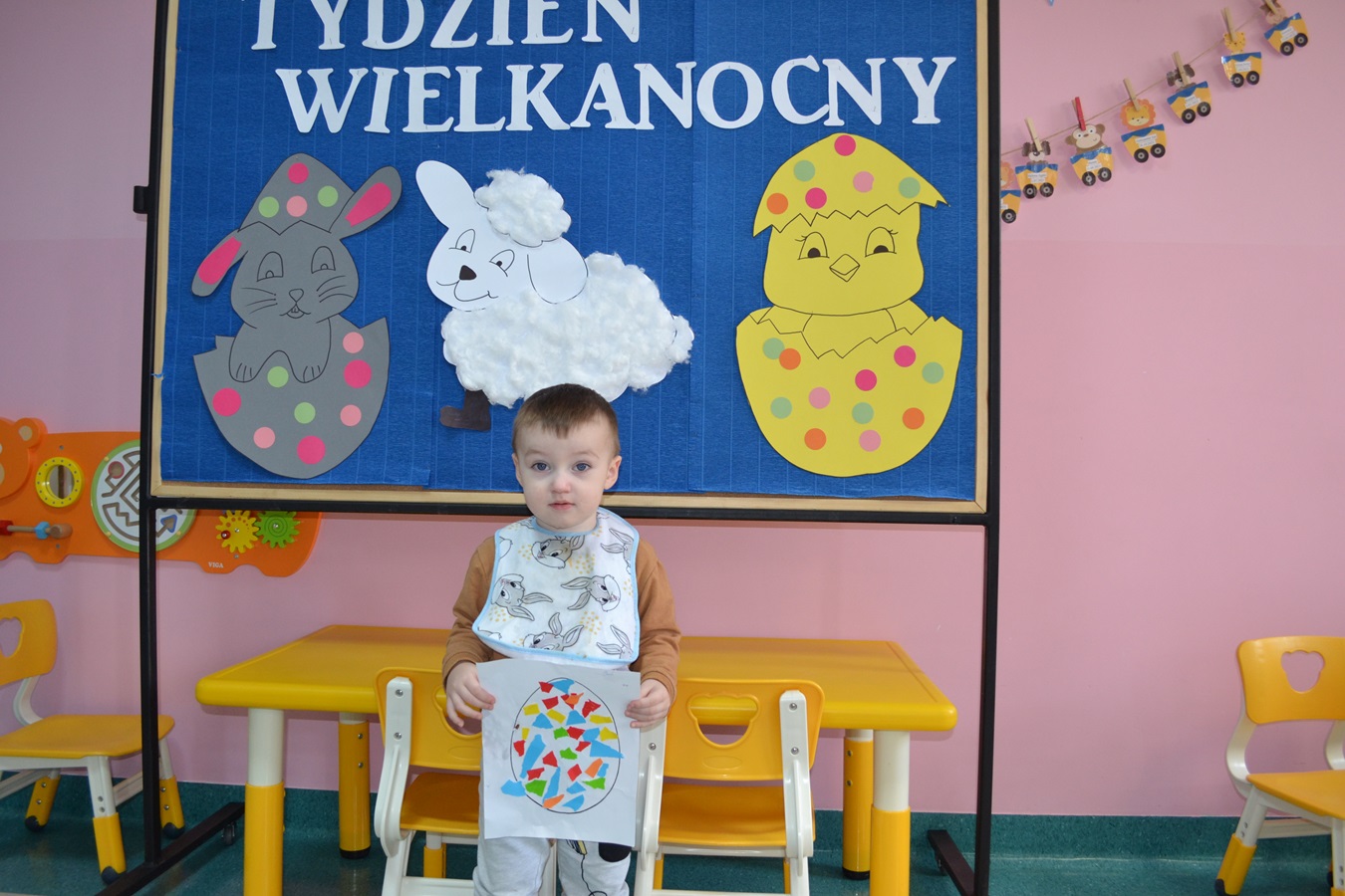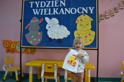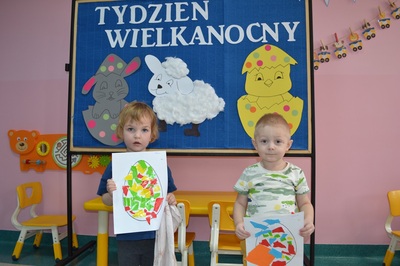 Święta Wielkanocne to wyjątkowy czas , w którym symboliczne obrzędy religijne , tradycja ludowa i świat przyrody splatają się w jedno. Maluszki poznały tradycję wielkanocnego stołu , obejrzały filmy w jaki sposób można zrobić piękne pisanki  , kraszanki i wykonały własne wydzierane pisanki . Poznały z jakich potraw składa się wielkanocne śniadanie i wiele innych ciekawych rzeczy . Na sam koniec tygodnia maluchy dowidziały się o tradycji ,,lanego poniedziałku” i jego atrybutach. Było dużo śmiechu i dobrej zabawy.