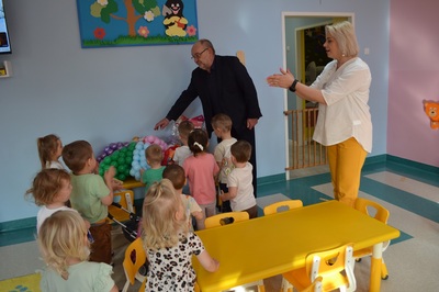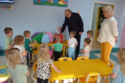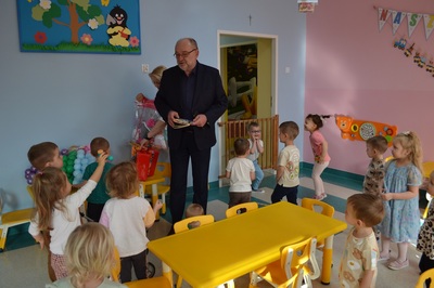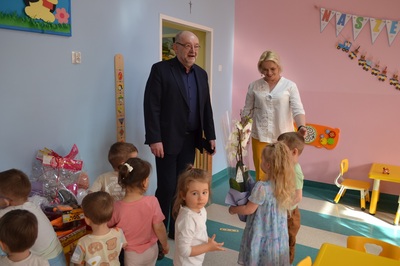 Wręczanie sobie prezentów jest zwyczajem starym jak świat i towarzyszy człowiekowi niemal od początku istnienia ziemi. Obdarowywanie sprawia ogromną radość, ale nasze maluchy zdecydowanie wolą dostawać zabawki, dlatego dzisiejszy dzień był dla nas wyjątkowy. Odwiedził nas Wójt Gminy Gozdowo pan Dariusz Kalkowski i obdarował super prezentami. Dzieci były zachwycone i w podziękowaniu wręczyły naszemu darczyńcy pięknego kwiatka. Zabawki sprawiły wiele radości, zabawy i głośnego śmiechu naszym najmłodszym. Dowodem na nasze słowa są wspólne zdjęcia.