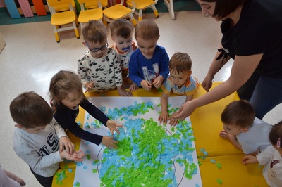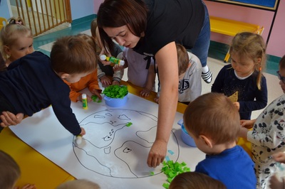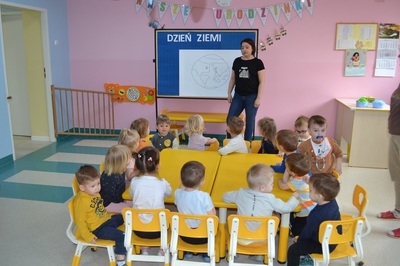 Wychowankowie dowiedzieli się, jak dbać o środowisko i otaczającą nas przyrodę. Miały okazje posłuchać o tym, że Ziemia jest jedyną zamieszkaną planetą i jednocześnie naszym domem, więc musimy o nią dbać, jak najlepiej potrafimy, np. poprzez segregację śmieci, a także o ich recykling.