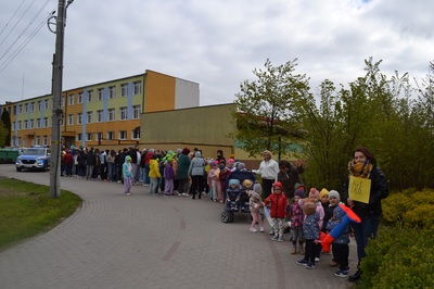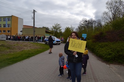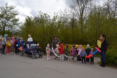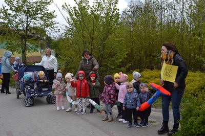 Zwieńczeniem zdobytych wiadomości proekologicznych było uczestniczenie w ,,Happeningi ekologicznym’’, maluchy szły dzielnie ulicami naszej miejscowości razem z innymi jednostkami przedszkolnymi, szkolnymi, wykrzykując proekologiczne hasła.