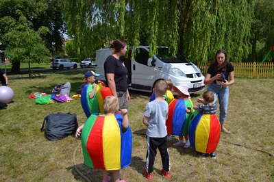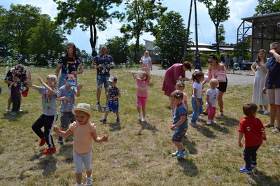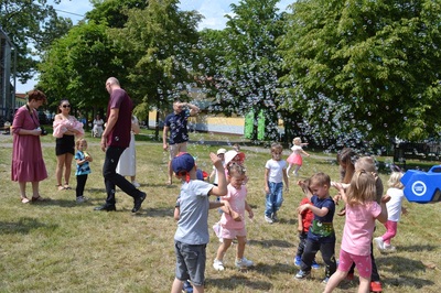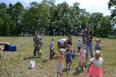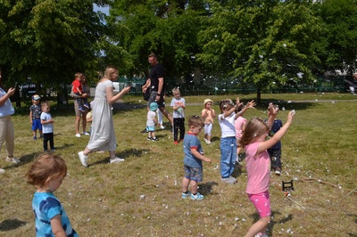 Po występach oraz prezentach , nadeszła chwila na zabawę na powietrzu. Czas maluchom i ich rodzeństwu umilały tego dnia Panie animatorki ze świetnymi , ciekawymi zabawami. Nie zabrakło szaleństwa w bańkach mydlanych i sztucznym śniegu ,brokatowych tatuaży oraz pysznego poczęstunku przygotowanego przez mamusie naszych podopiecznych.