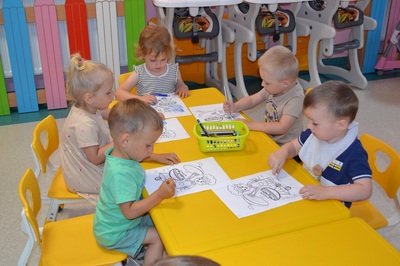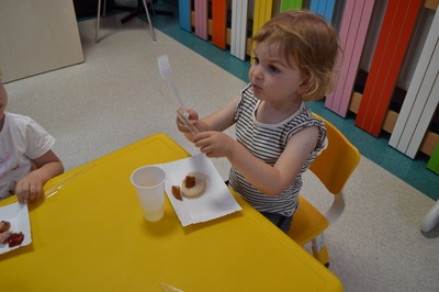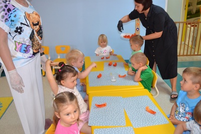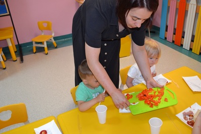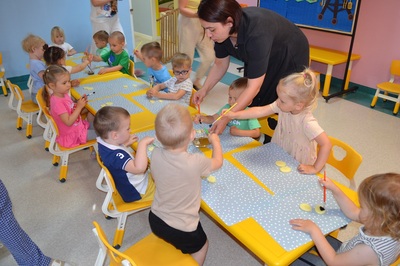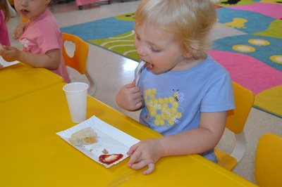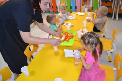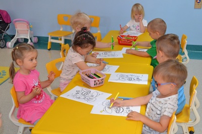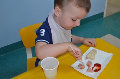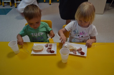 Aby umilić czas spędzany w klubiku ciocie zorganizowały grilla dla naszych milusińskich. W oczekiwaniu na wspaniały posiłek dzieci w tym czasie bawiły się beztrosko w swoje ulubione zabawy , konstruowały na dywanie wspaniałe budowle z dużych plastikowych klocków, oraz wykonały przepiękne prace plastyczne.