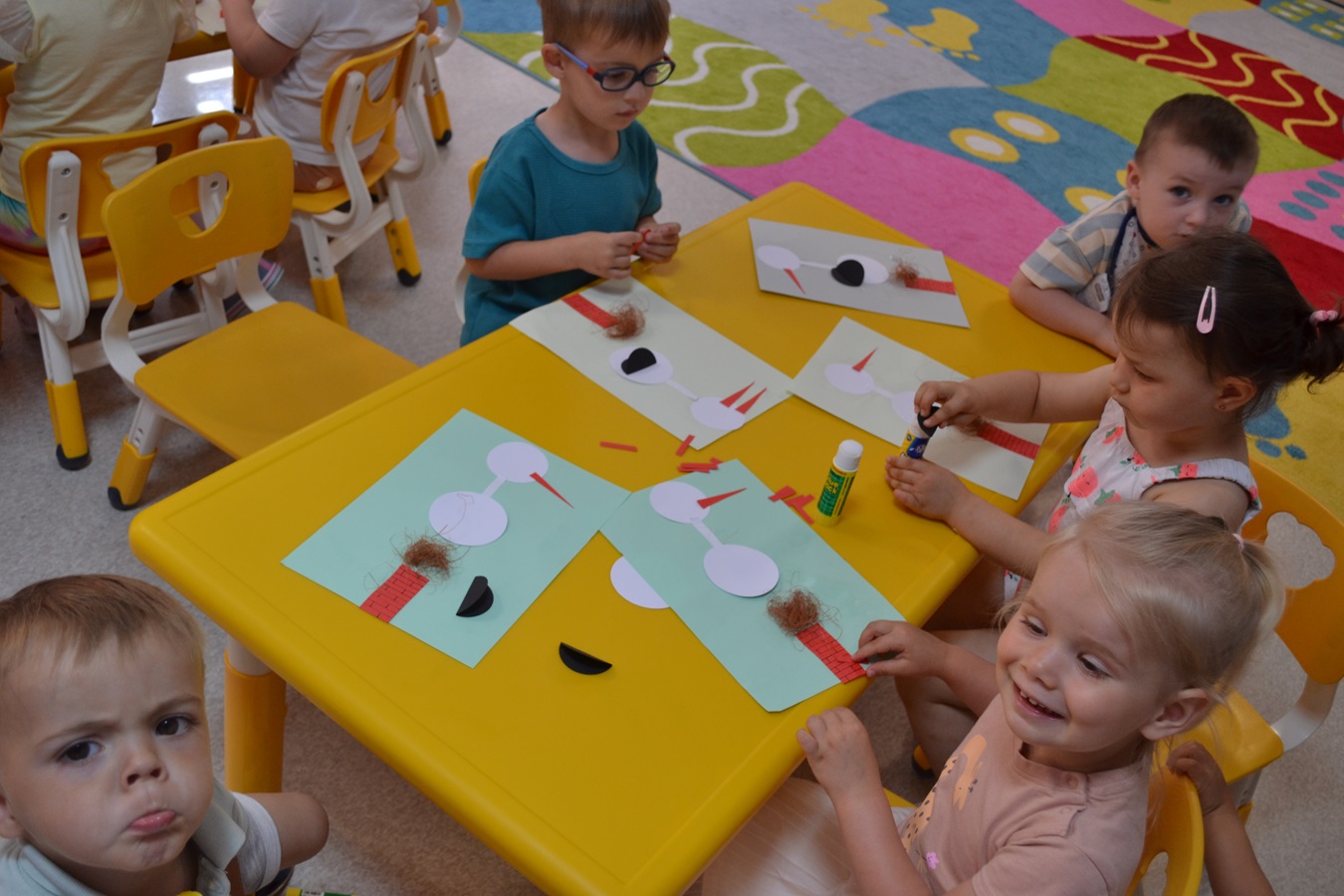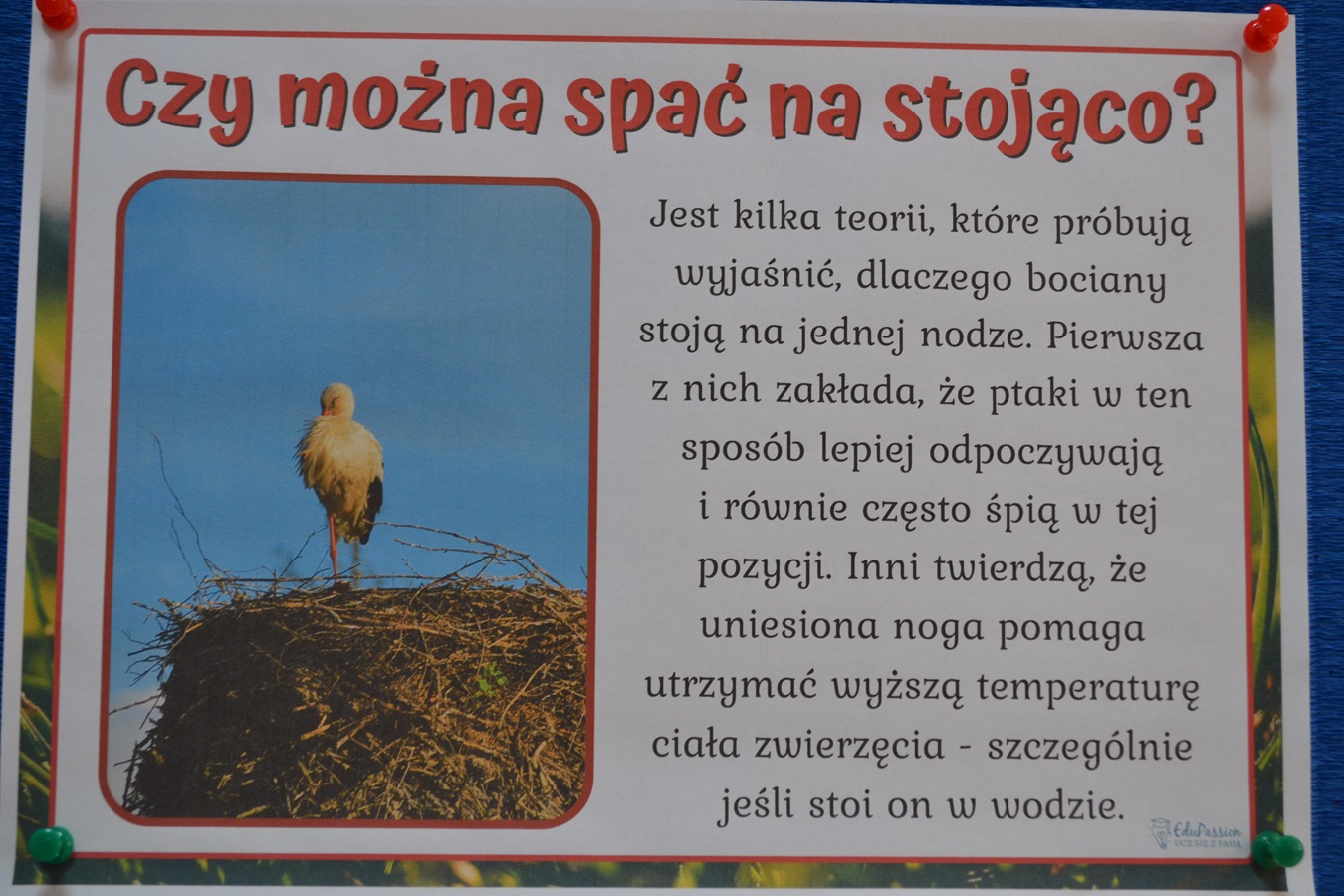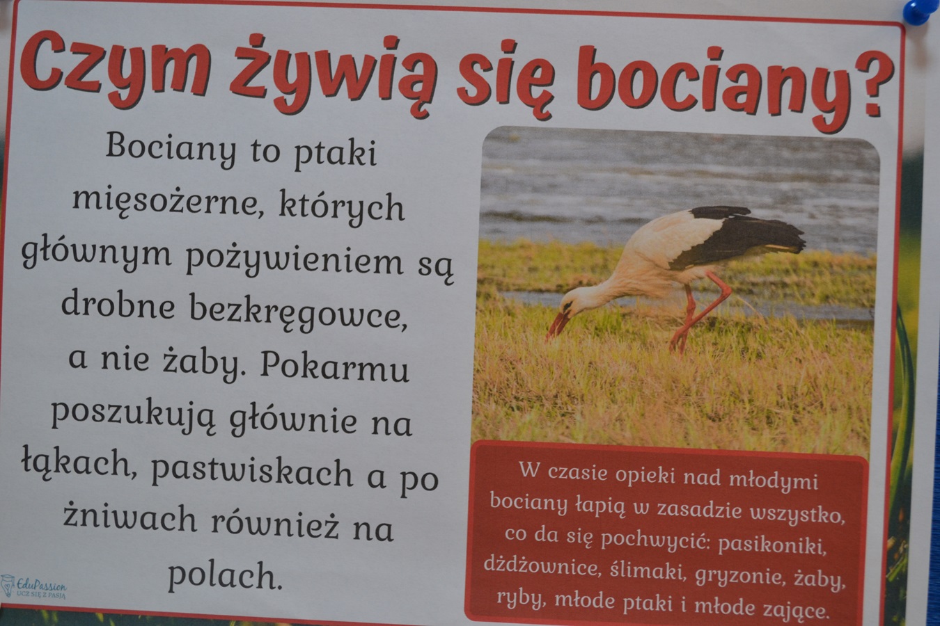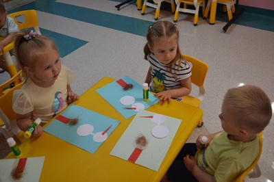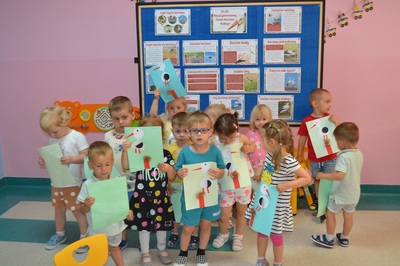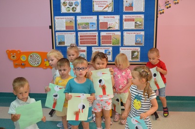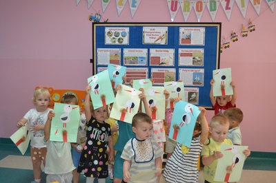 Dzieci wiedzą, że ruch, noszenie pokarmu, gałęzi, perzu, to codzienność w bocianim świecie. Maluchy podczas zajęć dowiedziały się wiele ciekawostek o bocianie, między innymi : co je, jak śpi, gdzie zakłada gniazda i jaką drogę pokonuje do Polski, ale także, jakie zagrożenia czyhają na niego ze strony człowieka i jak dzieci mogą mu pomóc. Nie zabrakło także bocianich zabaw – maluchy naśladowały bociani chód, próbowały stać jak bocian na jednej nodze. Zajęcia zakończyły się warsztatami plastycznymi – portrety bociana. Dzień dzisiejszy, był okazją do zwrócenia uwagi na szczególne znaczenie bocianów oraz potrzebę ochrony tych ptaków.