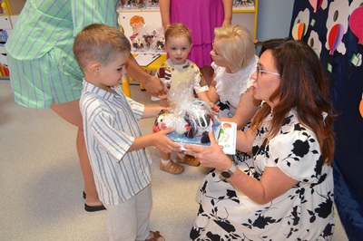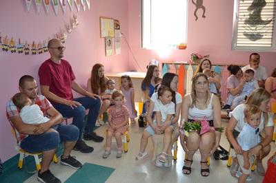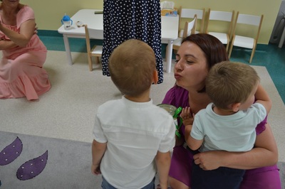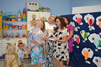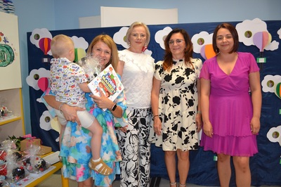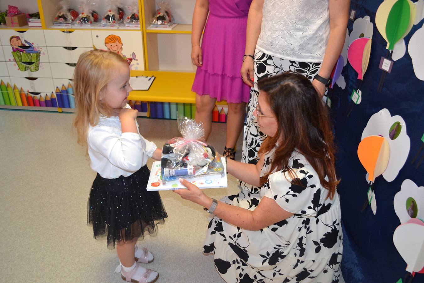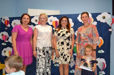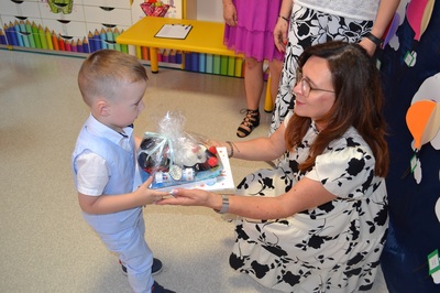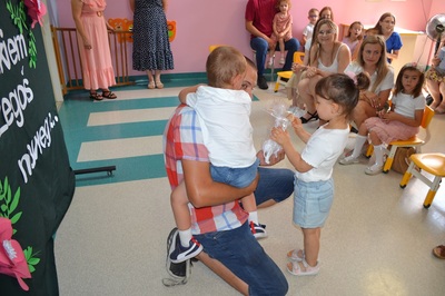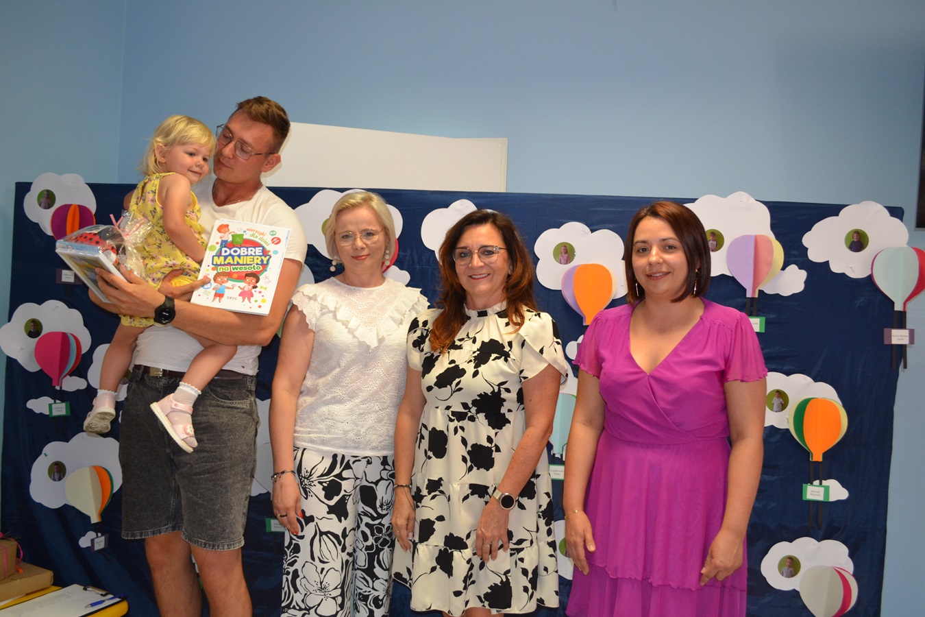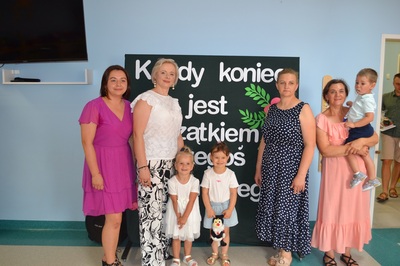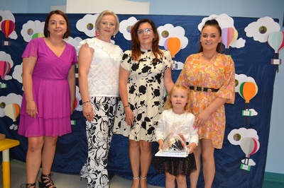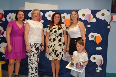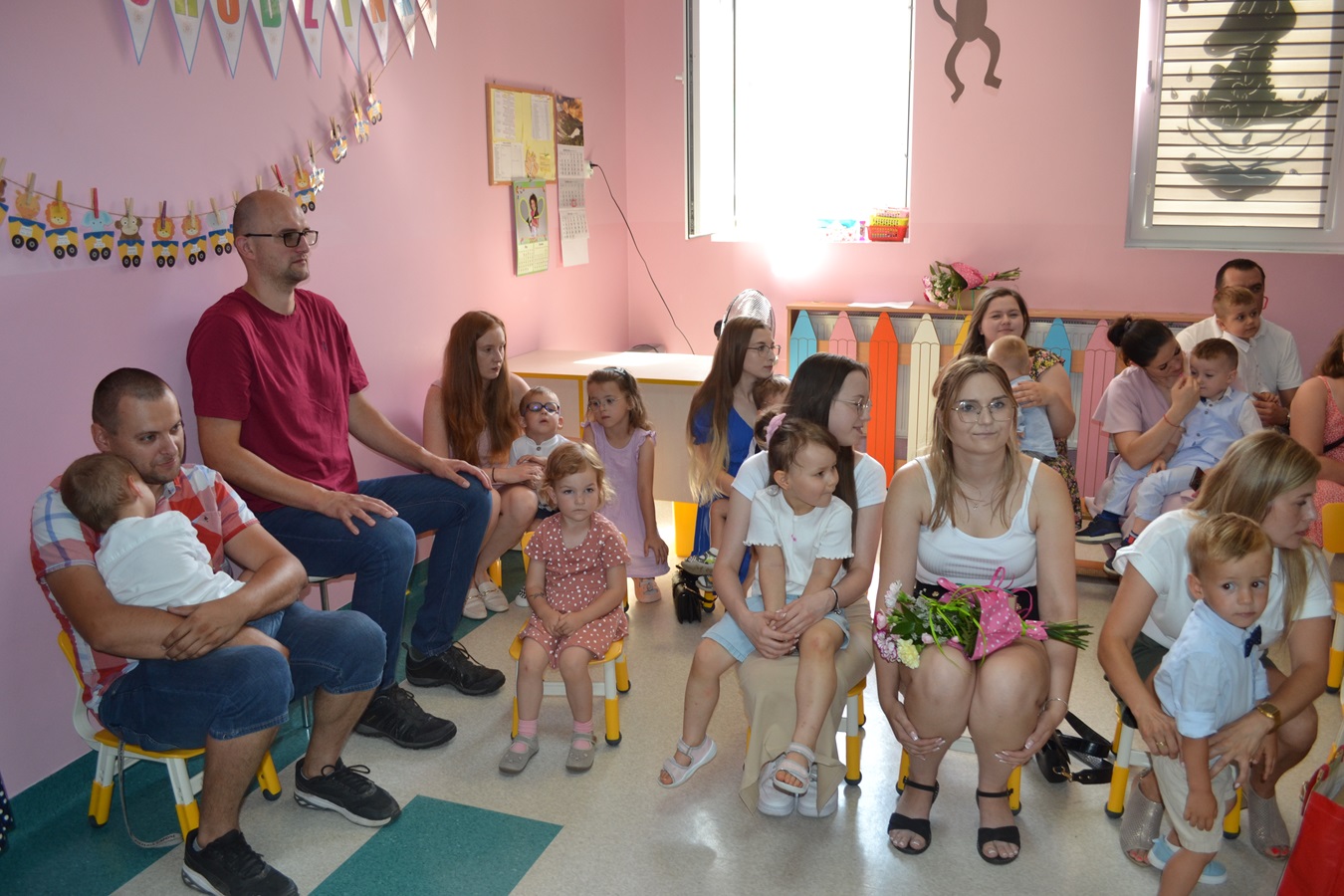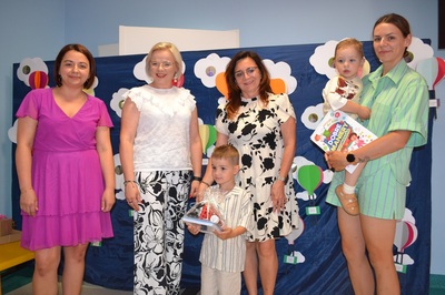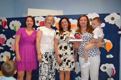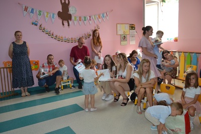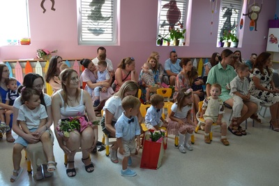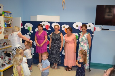 Dziękuję również naszym fantastycznym ciociom, których praca, ciepło i troska sprawiają, że nasz klubik jest wyjątkowym miejscem. Wasze oddanie i profesjonalizm są fundamentem, na którym budujemy naszą codzienność. Dziękuję Wam za każdą chwilę poświęconą naszym maluchom. Ten rok był pełen niezapomnianych chwil i małych, ale ważnych sukcesów. Dzieci nauczyły się wielu nowych umiejętności, odkryły swoje pierwsze pasje i zawiązały pierwsze przyjaźnie. To właśnie te chwile tworzą piękne wspomnienia, które pozostaną z nami na zawsze. Przed nami wakacje, czas odpoczynku i zabawy. Życzę Wam wszystkim, aby były pełne słońca, radości i wspólnych, beztroskich chwil spędzonych z rodziną i przyjaciółmi. Niech ten czas będzie dla Was okazją do nabrania sił i energii na nowe przygody, które czekają na nas po wakacjach. Dziękuję Wam wszystkim za ten wspólnie spędzony rok. Życzę wspaniałych wakacji i do zobaczenia wkrótce! Po przedstawieniu przyszedł czas na oficjalne pożegnanie dzieci, które opuszczają w tym roku mury klubiku. Wszystkie maluchy otrzymały pamiątkowe dyplomy oraz drobne upominki, które będą im przypominać o tym wyjątkowym okresie. Część dzieci z nami zostaje i cieszymy się że będziemy się jeszcze spotykać.