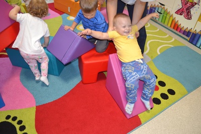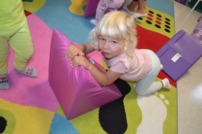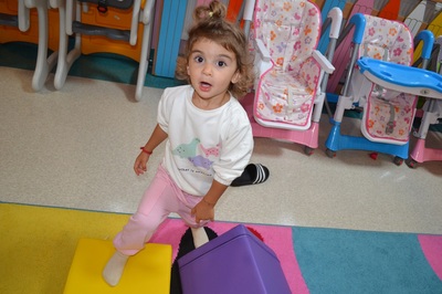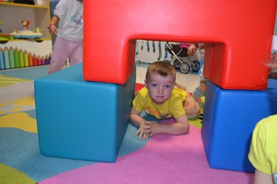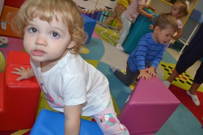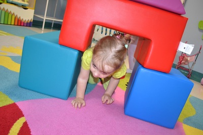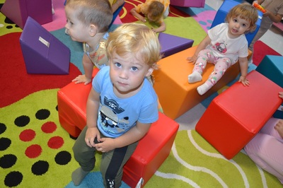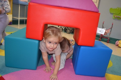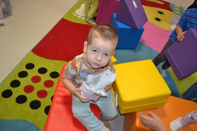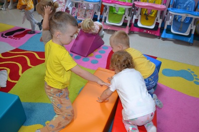 Dziś w naszym klubie dziecięcym odbyła się pełna energii i radości zabawa w tor przeszkód. Dzieci z ogromnym entuzjazmem przystąpiły do pokonywania różnorodnych przeszkód. Trasa została ułożona z materacy o różnych kształtach – prostokątów, kwadratów i trójkątów, co sprawiło, że każde dziecko mogło ćwiczyć nie tylko sprawność fizyczną, ale także orientację przestrzenną.