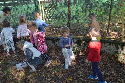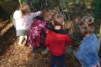 Dzieci z Klubu Dziecięcego "Radosna Kraina" w Gozdowie wybrały się na spacer do pobliskiego parku, niosąc ze sobą orzechy dla wiewiórek. Spacer pośród jesiennych drzew był pełen radości, a dzieci z entuzjazmem szukały wiewiórek, by podzielić się przyniesionymi smakołykami. Gdy tylko zauważyły te zwinne zwierzątka, z zachwytem obserwowały, jak wiewiórki podbiegają, by zebrać orzechy, a ich rudo-brązowe futerka migały między gałęziami. To była pełna wrażeń wyprawa, w której dzieci uczyły się troski o przyrodę i czerpały radość z bliskości natury