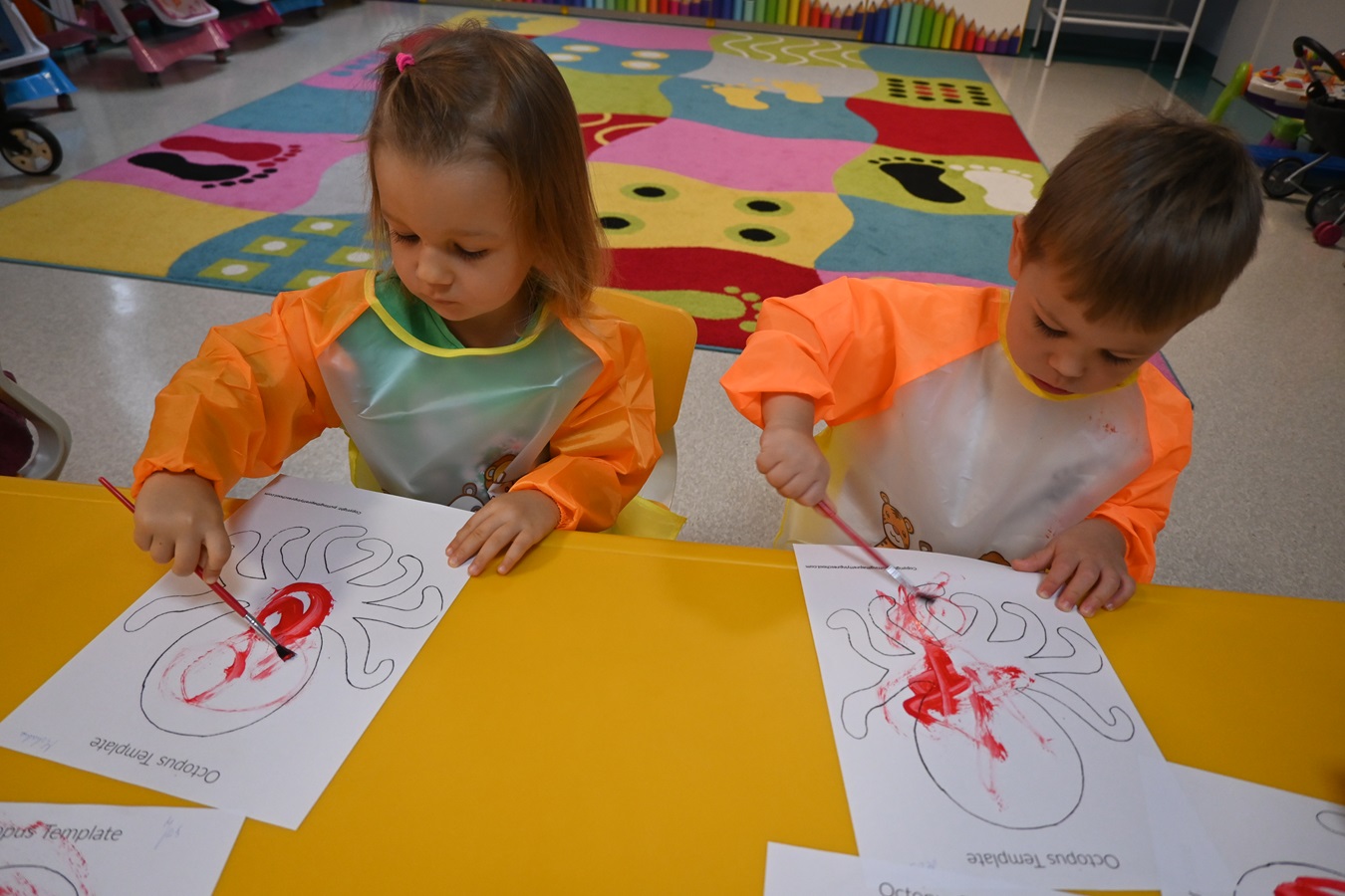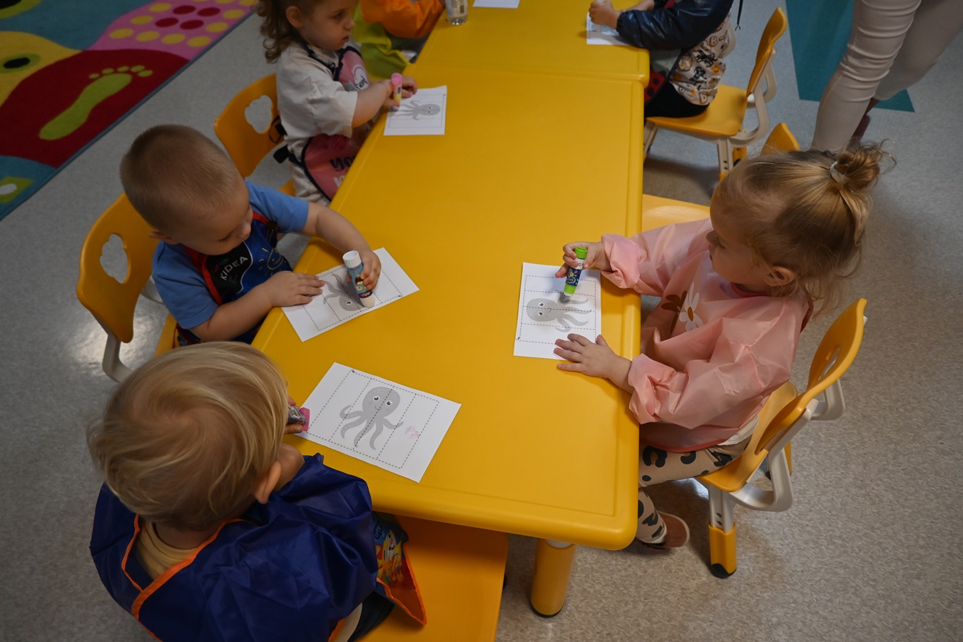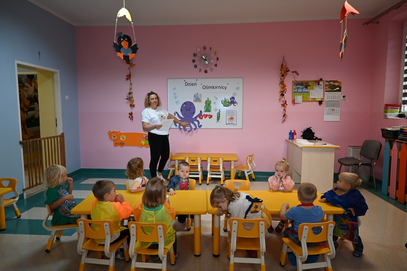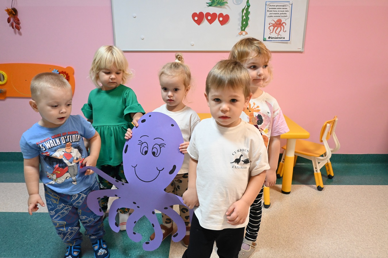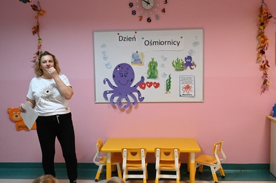 W naszym klubiku obchodziliśmy dzień ośmiornicy , dzieci najpierw poznały wygląd ośmiornicy, dowiedziały się jakie posiada zmysły, czym się żywi i w jaki sposób broni się przed drapieżnikami. Dzieci wysłychały różnych ciekawostek o ośmiornicach. Później doskonaliły przeliczenie do 8. Wykonały pracę przyklejając obrazek przedstawiający ośmiornicę z pociętych kawałków. Na zakończenie dnia tańczyły do piosenki Ośmiornica baletnica