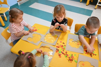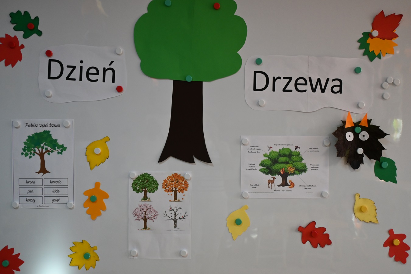 Na dzisiejszych zajęciach dzieci dowiedziały się, jak ważną rolę w funkcjonowaniu naszej planety pełnią drzewa.10.10 to dzień, w którym obchodzone jest ich święto. Dzieci z naszej grupy poznały budowę drzewa, jego znaczenie dla człowieka, zwierząt i przyrody. Klubowicze dowiedziały się również jak wielkie znaczenie mają drzewa dla czystości powietrza, a tym samym dla zdrowia człowieka.Dzień Drzewa, który stał się wspaniałą okazją do poznawania przyrody i rozwijania kreatywności. Dzieci z wielkim zaangażowaniem tworzyły swoje drzewo z kolorowej bibuły. Cała grupa z radością współpracowała przy tworzeniu swojego papierowego dzieła.Dzieci przyklejały kolorowe listki, wg własnego pomysłu. Następnie maluszki dowiedziały się o rodzajach drzew, ich liściach i owocach.