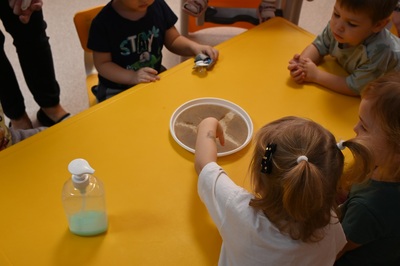 Na koniec zajęć promujących higienę rąk , ciocia przeczytała historię psa ,,Łapsona” i superbohatera ,, Mydło-mena „ , który uświadomił przyjacielowi jak ważne jest codzienne mycie rąk po różnych czynnościach w ciągu dnia.