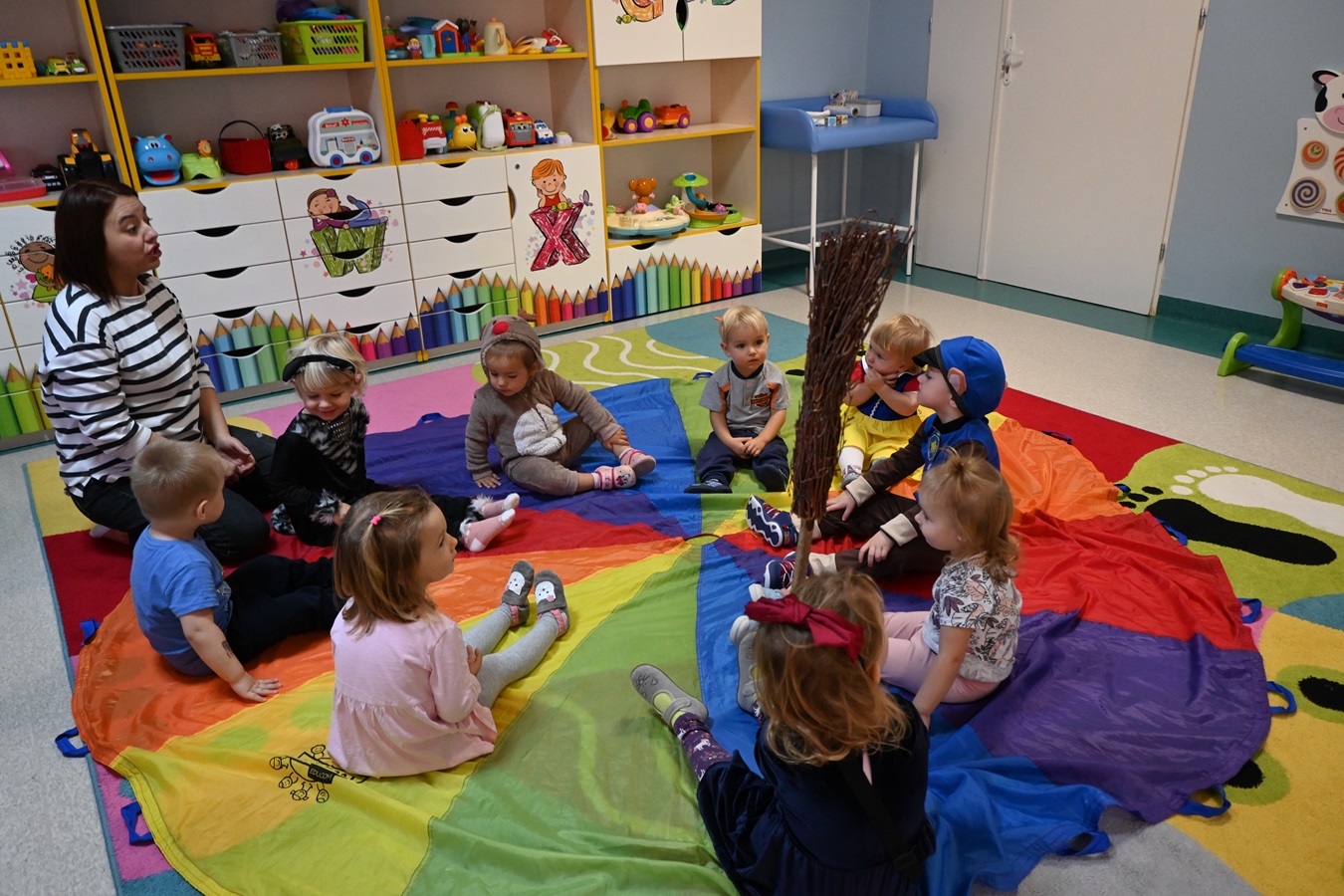 Dziś obchodziliśmy w klubiku Międzynarodowy Dzień Postaci Z Bajek. Jest to święto wszystkich bajkowych postaci i dobry moment na to by przypomnieć sobie część z nich. Wybrana data nie jest przypadkowa gdyż jest to dzień urodzin jednego z największych twórców bajek Walta Disneya. Klubowicze tego dnia wyruszyły w daleką podróż do bajkowej krainy, zabrała je tam latająca chusta po wypiciu magicznego soku z zaklęciem. ( Szczypta fantazji, garść radości niech ta grupa dzieci w krainie bajek zagości). Klubowicze odgadywali z jakiej bajki były losowane przez opiekuna rekwizyty, które były ukryte w magicznym worku.To było zadanie na przypomnienie sobie bajek Disneya. Następnym zadaniem dla maluszków było pokonanie bardzo trudnej drogi aby uratować zamkniętą w wieży księżniczkę. Do przejścia były kamienie ( rozłożone puzzle) - po których dzieci skakały jak żabki, następnie była zarośnięta chaszczami jaskinia ( tunel dla dzieci)-, a na koniec wspinaczka po górach (wspinaczka po piankowych klockach). Dzieciom udało się to przejść bez żadnych trudności na zakończenie zabawy były tańce do znanych piosenek z bajki i baśni. To był magiczny dzień.