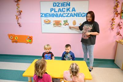 W Dniu Placków Ziemniaczanych dzieci poznały ich historię , ciekawostki związane z tym daniem , a także sprawdzony przepis. Zorganizowane zostały zawody w ścieraniu ziemniaków na tarkach , później dla odprężenia wykonaliśmy ziemniaczane stempelki. Na sam koniec Dnia Placka Ziemniaczanego nie mogło zabraknąć degustacji właśnie Placków Ziemniaczanych , które bardzo dzieciom smakowały.