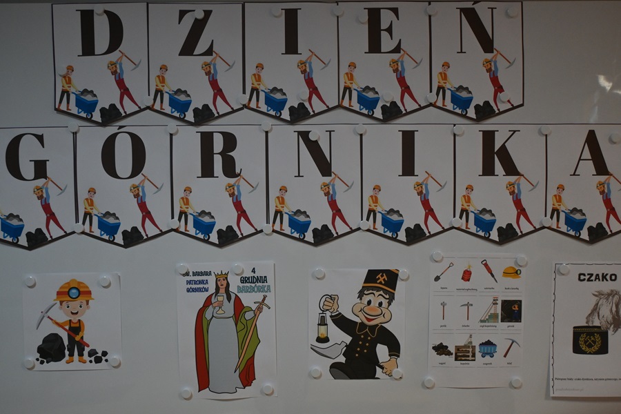 4 grudnia to data, która na stałe wpisała się do naszego kalendarza uroczystości dni klubikowych Jest szczególnym dniem, w którym swoje święto obchodzą górnicy. Najmłodszym zostały opowiedziane ciekawostki o pracy górnika, kto jest patronką, dowiedzieli się jak ciężka i niebezpieczna jest praca w kopalni. Była to doskonała okazja do wzbogacenia wiedzy na temat zawodu górnika. Wykonały pracę plastyczną. Malowały rysunek wagoniku węglem do rysowania. Po skończonej pracy mogły zobaczyć jakie brudne ręce ma górnik pracujący w kopalni, bo dzieci także po malowaniu szły do łazienki aby umyć rączki, które były czarne.