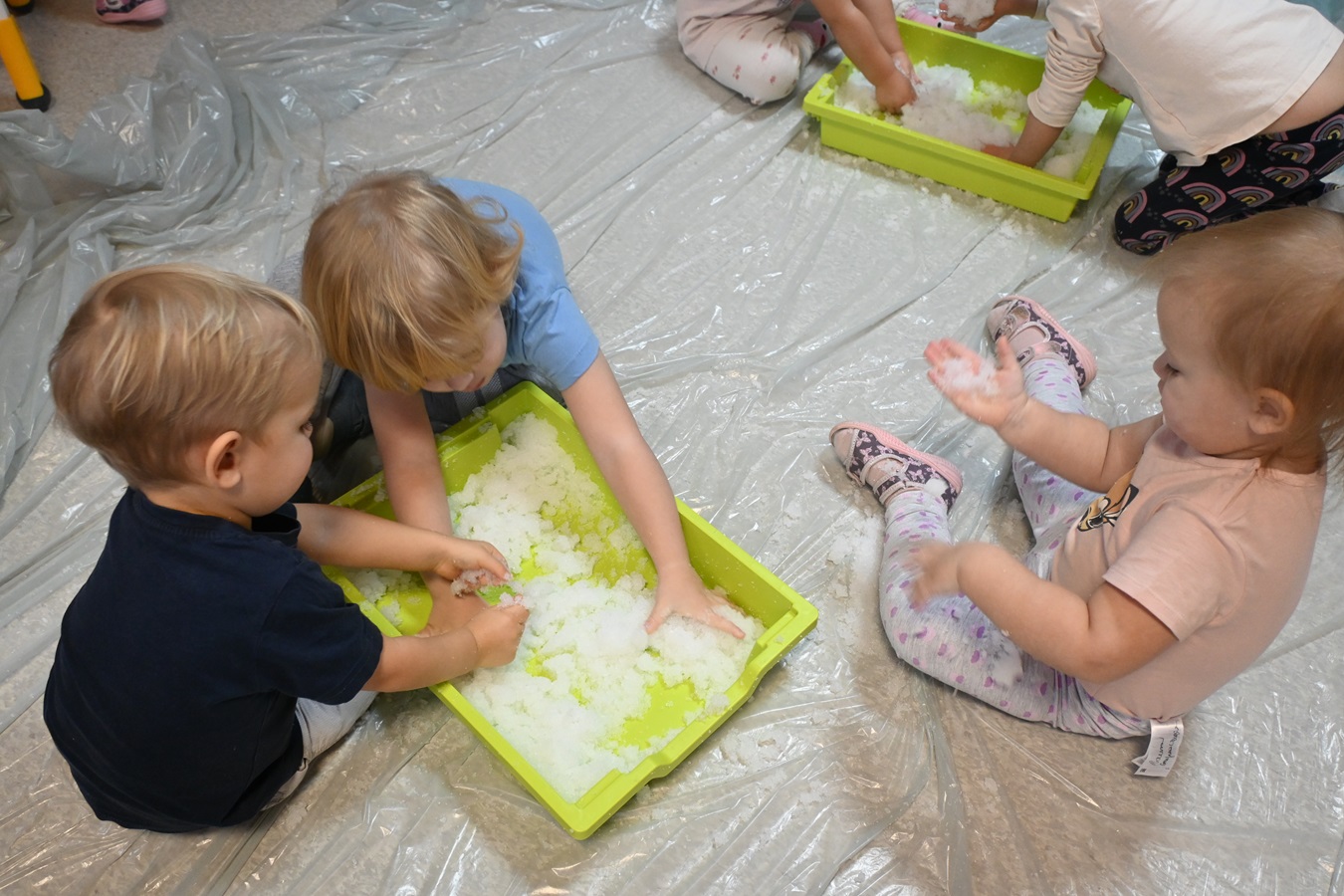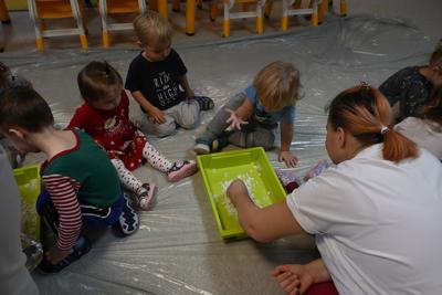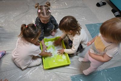 W naszym klubiku rozpoczęliśmy zimowe szaleństwo! Dzieci z entuzjazmem przywitały pierwszy śnieg, nawet jeśli był on tylko w naszej wyobraźni. W kreatywnej zabawie, maluchy lepiły „śnieg” z wody i proszku z pampersów, co dostarczyło im ogromnej radości i pozwoliło na rozwijanie zdolności manualnych.