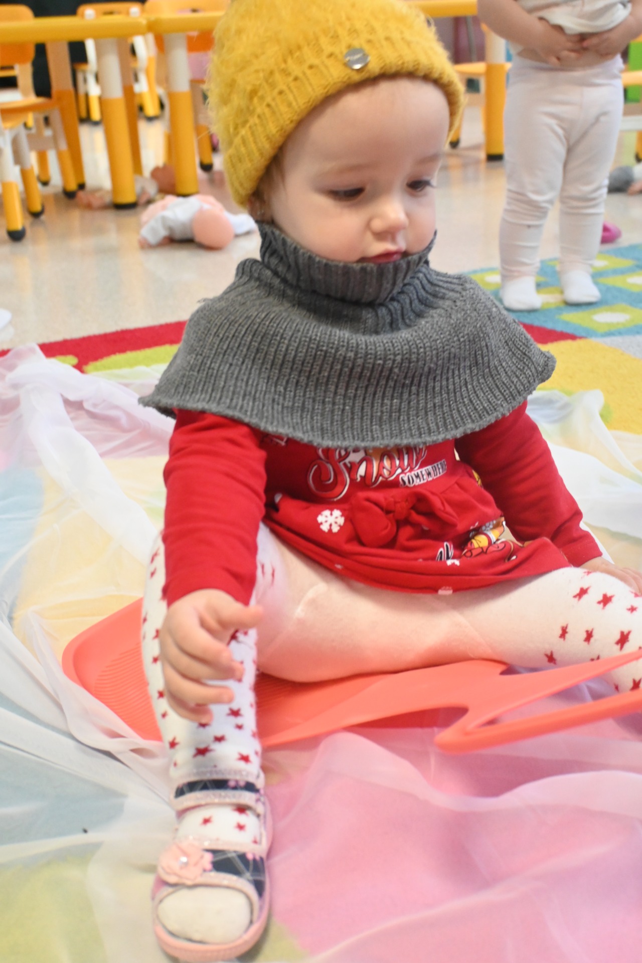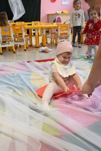 Na koniec, wzięły udział w emocjonującej jeździe na ślizgaczu, co sprawiło, że cała sala wypełniła się radosnym gwarem i śmiechem. Nasze zimowe szaleństwo dostarczyło dzieciom nie tylko frajdy, ale także możliwości rozwijania współpracy w grupie oraz stawiania pierwszych kroków w nauce sportów zimowych.