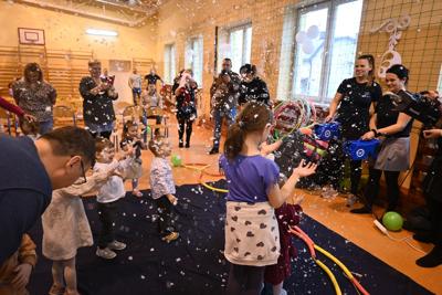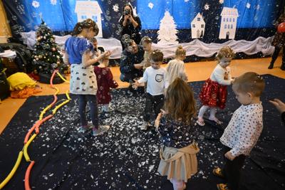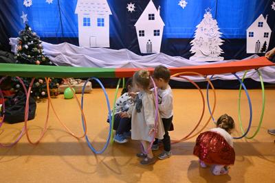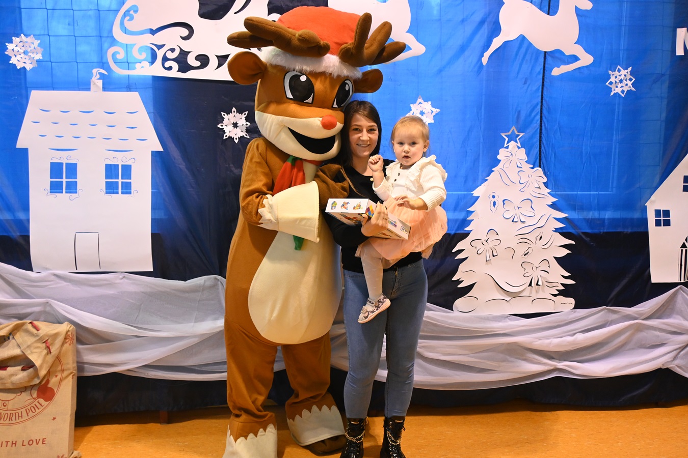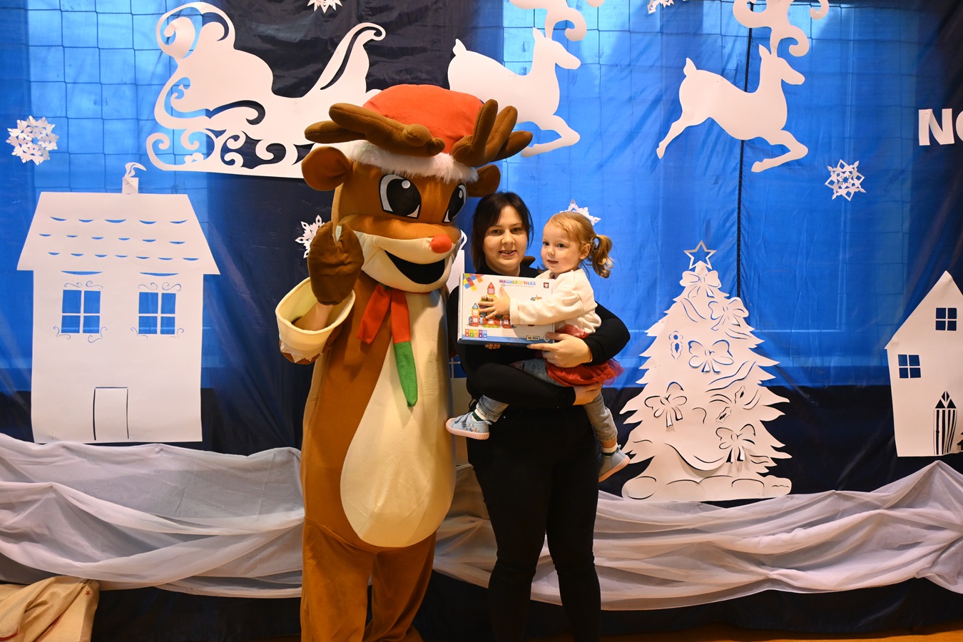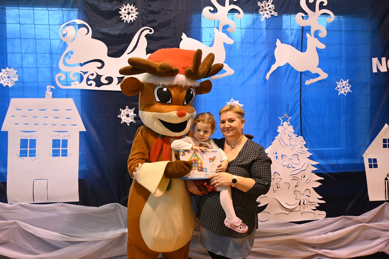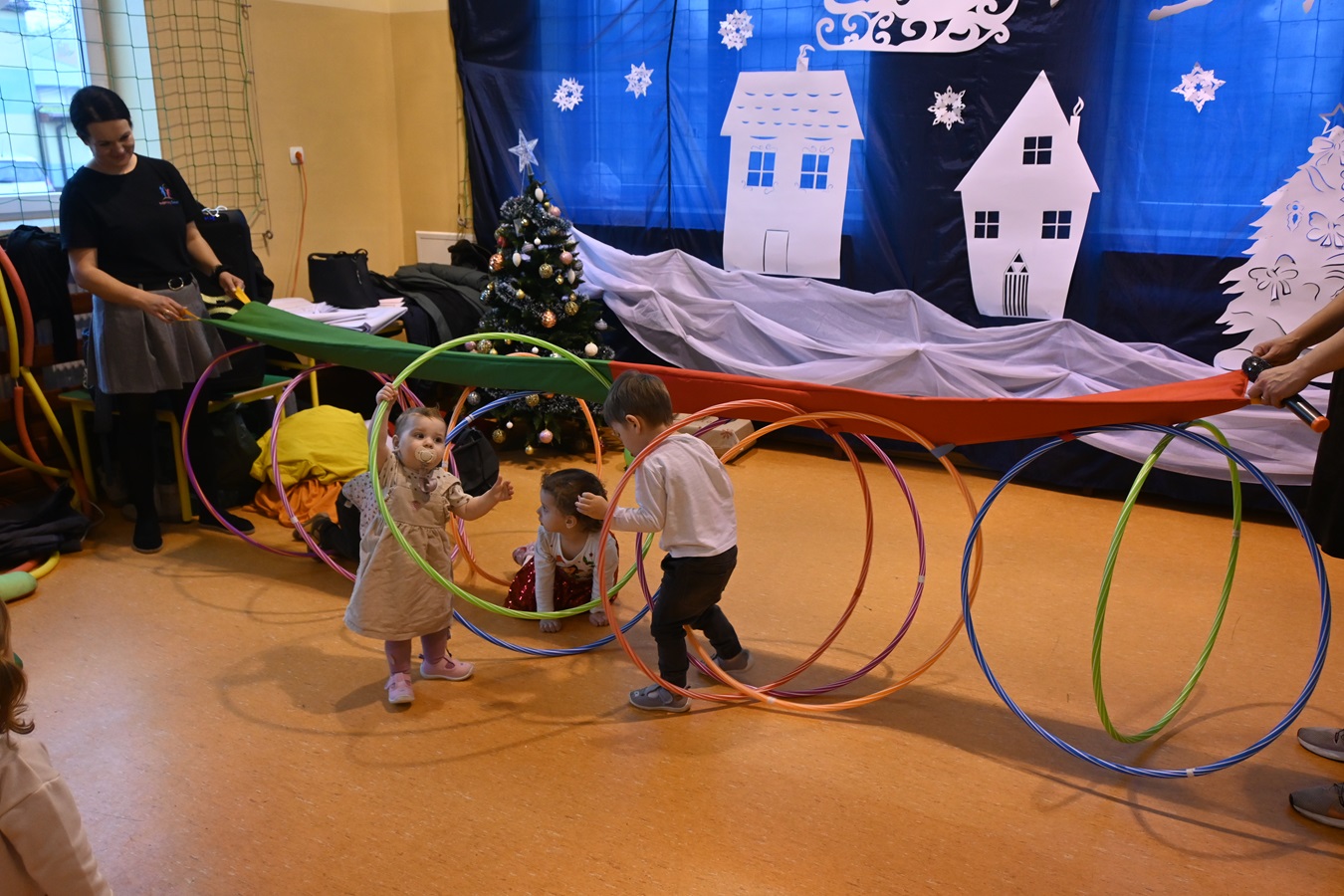 Na wstępie Pani Kierownik w imieniu swoim i wszystkich pracowników powitała gościa Panią Kierownik Referatu Oświaty Jolantę Lewandowską , rodziców oraz dzieci , złożyła życzenia noworoczne i tym samym rozpoczęła uroczystość. A zabawa zaczęła się od tanecznych piruetów z chustą , później było bańkowego  szaleństwo , konkurencje sportowe , balonowe miecze , brokatowe tatuaże i poczęstunek. Oczywiście dzieci dostały wyczekiwane prezenty od pomocnika Świętego Mikołaja ,renifera Rudolfa. To był miło spędzony dzień z ciociami i rodzicami , pełen śmiechu i pozytywnych emocji !