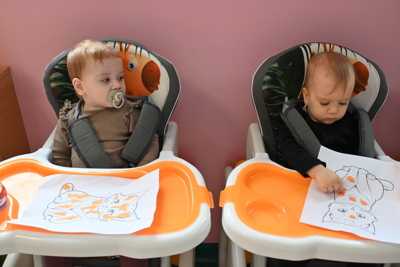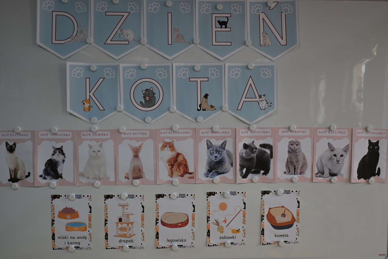 Dziś w naszym Klubiku świętowaliśmy Dzień Kota. Na początku dzieci wzięły udział w wesołej zabawie na dywanie. Na podłodze pojawiły się kolorowe obrazki kotków, a zadaniem maluchów było dopasowanie do nich kłębka wełny w odpowiednim kolorze. Następnie usiedliśmy do wspólnej rozmowy o kotkach. Dzieci dowiedziały się, jakie dźwięki wydają koty – że potrafią mruczeć, miauczeć i w ten sposób komunikować się z ludźmi. Dzieci podczas zajęć poznały różne rasy kotów. Dowiedziały się, że koty mogą mieć różne kolory, długość futerka i charakter oraz czego potrzebuje każdy kotek na co dzień, aby czuć się dobrze. Wspólnie wymieniliśmy miseczkę na jedzenie i wodę, kuwetę, legowisko, zabawki oraz drapak do ostrzenia pazurków. Dzieci wykonały piękne prace plastyczne – wyklejały plasteliną obrazek kotka, wybierając jego kolor spośród czarnego, białego, pomarańczowego i brązowego. Dzięki temu zajęcia były nie tylko świetną zabawą, ale też okazją do rozwijania zdolności manualnych i poznawania świata zwierząt. Na koniec maluchy zrobiły sobie pamiątkowe zdjęcie z uroczymi kotkami w postaci maskotek, które stały się ich wiernymi towarzyszami zabawy.