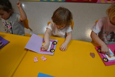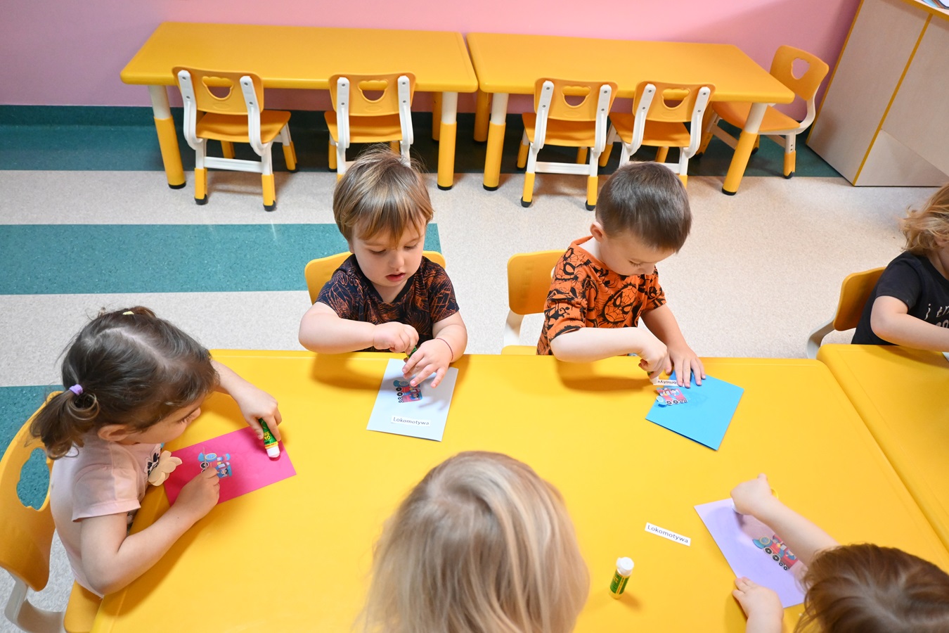 Z tej okazji w dniu dzisiejszym każde dziecko mogło poczuć się jak pisarz. Zanim dzieci przystąpiły do tworzenia własnej książeczki zapoznały się z drogą książki od autora do czytelnika. Na zakończenie dzieci ochoczo przystąpiły do tworzenia prac. Wykonały ją z wykorzystaniem wagoniku do którego wkleili obrazki z wiersza Lokomotywa. Dzień zakończyliśmy zabawami na dywanie.