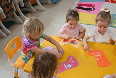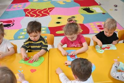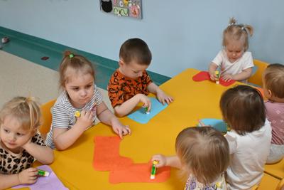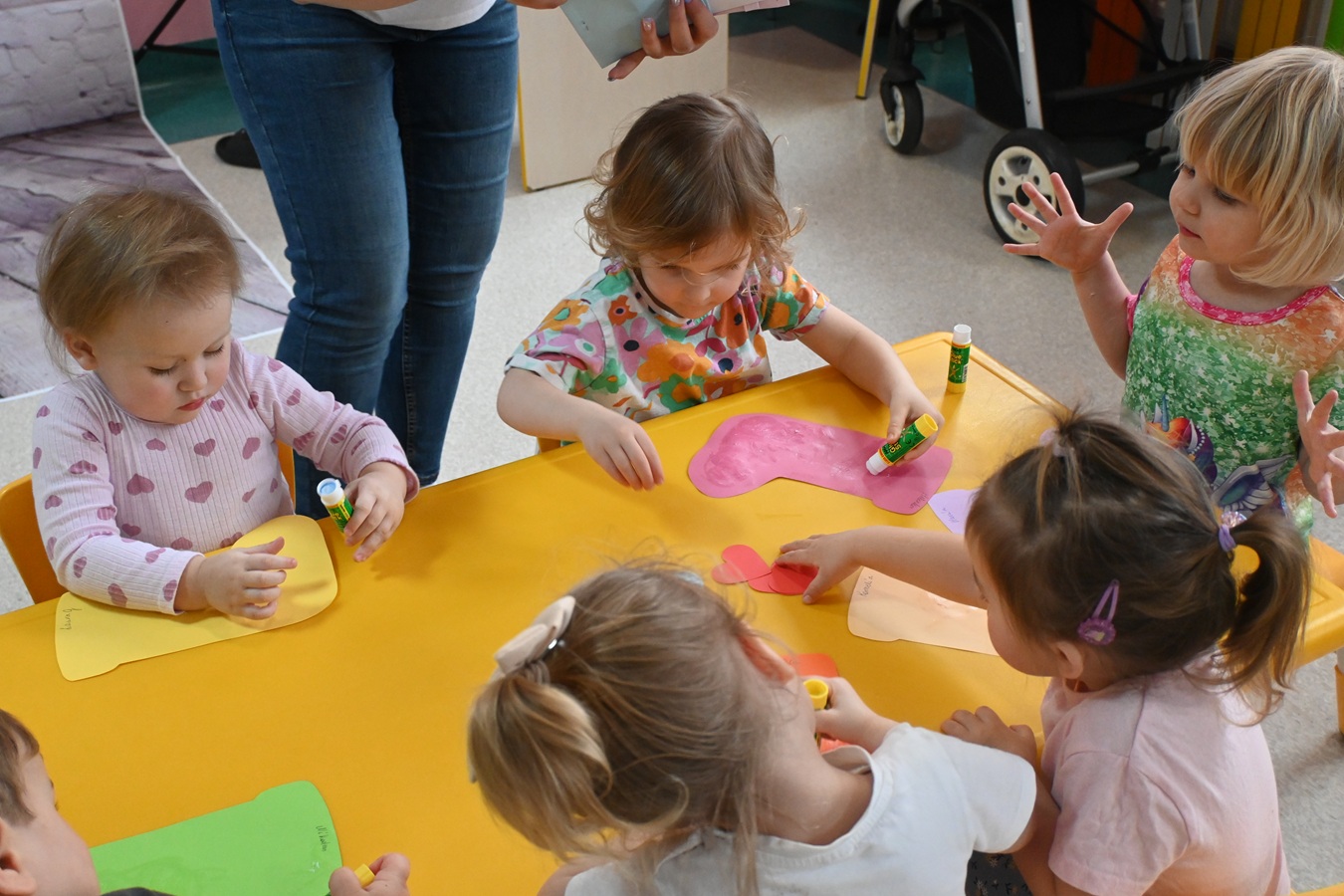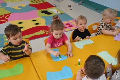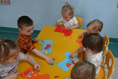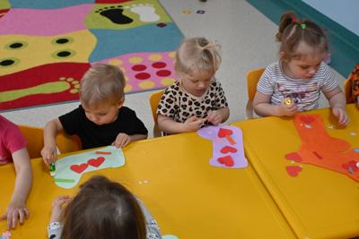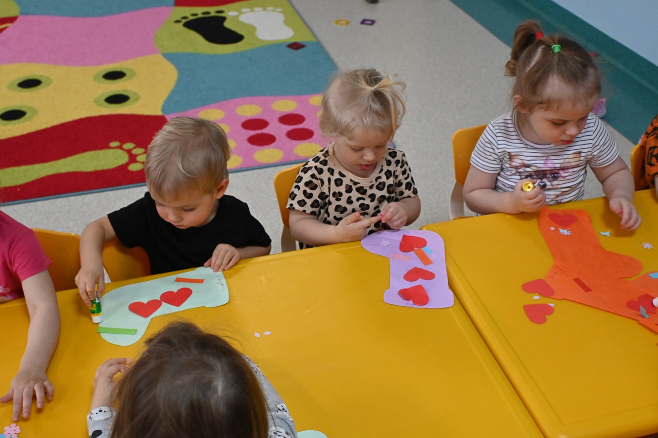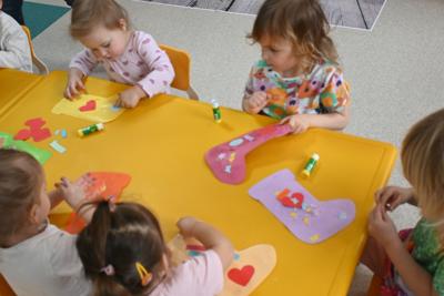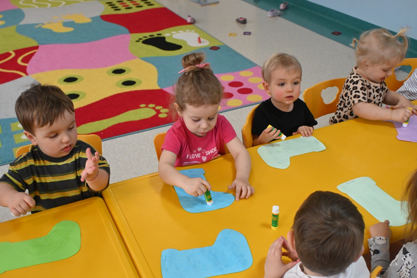 Podczas zajęć dzieci wzięły udział w wesołych zabawach. Wspólnie usiedliśmy na dywanie, gdzie zrobiliśmy pamiątkowe zdjęcia, zarówno indywidualne, jak i grupowe. Następnie dzieci z radością ozdabiały papierowe skarpetki, wykorzystując kolorowe materiały wycięte z papieru. Każda praca była inna, ale równie piękna, tak jak każdy z nas.