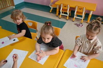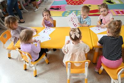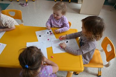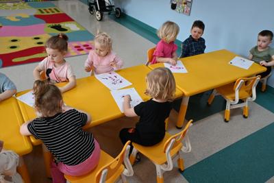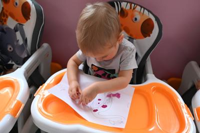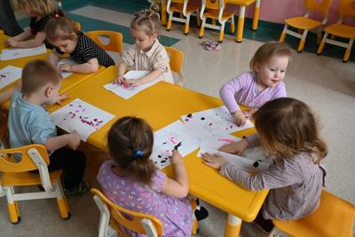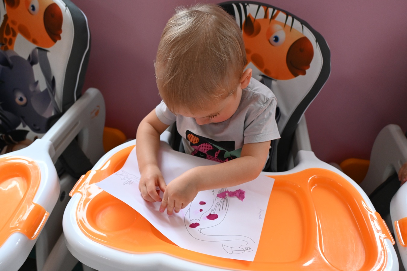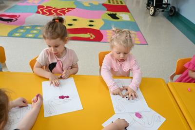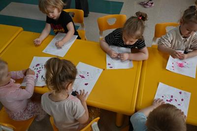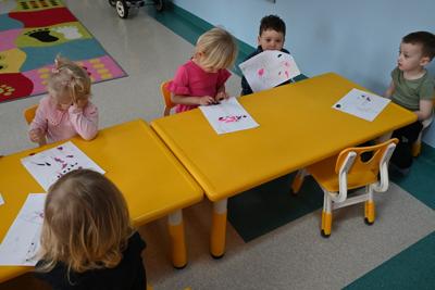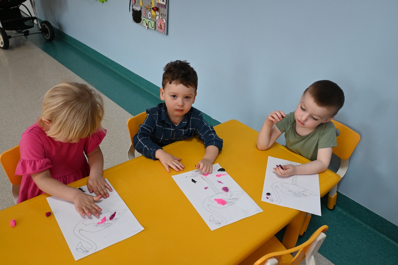 Podczas zajęć mali artyści wyklejały plasteliną kolorowankę z flamingiem starając się, by ich ptaki były jak najbardziej barwne i piękne. Powstały prawdziwe małe dzieła sztuki!