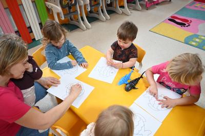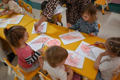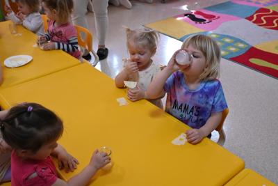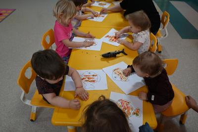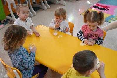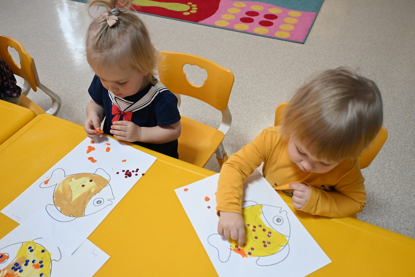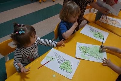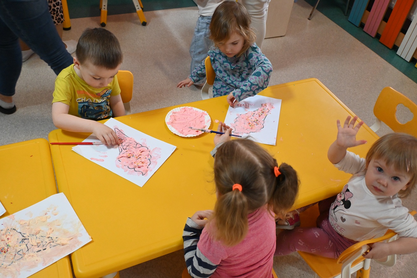 Dzieci z klubiku poznawały zasady zdrowego odżywiania właśnie na podstawie Piramidy Żywienia. Każdy jej element został szczegółowo omówiony podczas codziennych zajęć. Dzień po dniu dzieci zapoznawały się z kolejnymi poziomami piramidy, co odzwierciedlały prace plastyczne, które wykonywały. Jednego dnia malowały kolorową pianką lody, innym razem wyklejały plastelinową rybkę, ozdabiając ją kolorowymi cekinami.