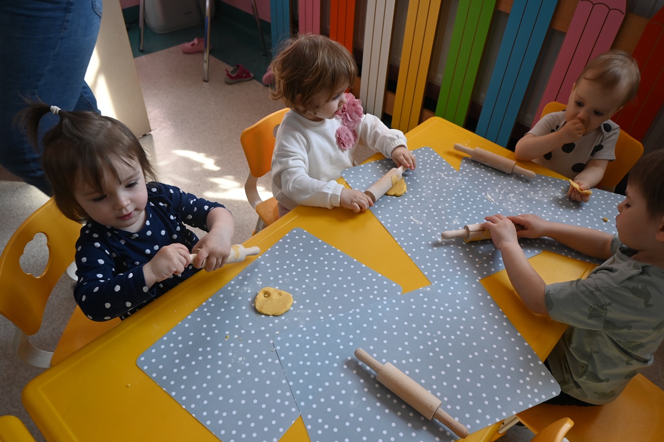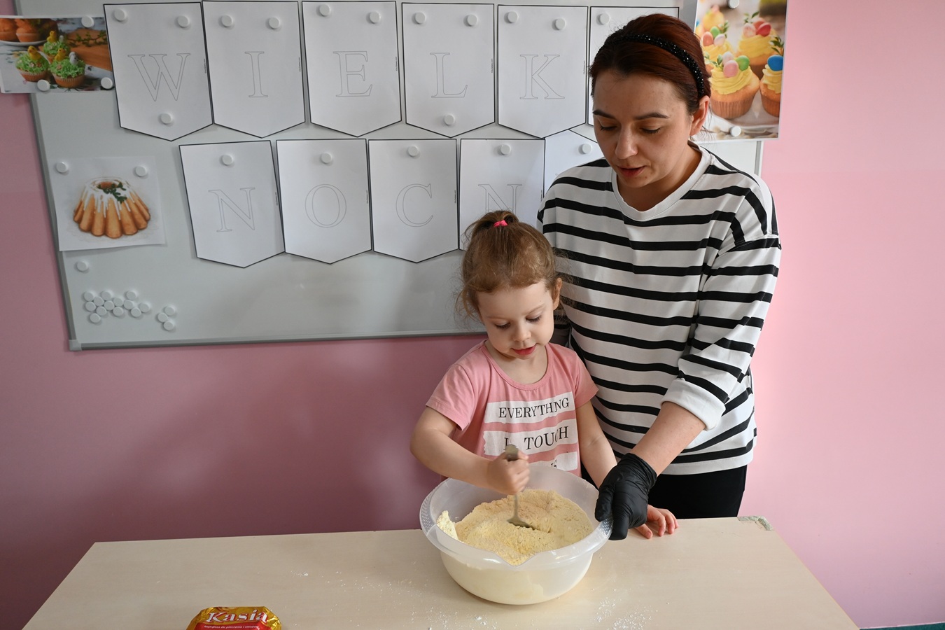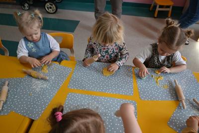 Zajęcia mają na celu nie tylko świetną zabawę , ale też rozwijanie zmysłu smaku , dotyku i zapachu oraz kształtowanie współpracy w grupie. Nie zabrakło również krótkiej pogadanki o tym , jakie potrawy przygotowuje się na Wielkanoc w różnych domach.