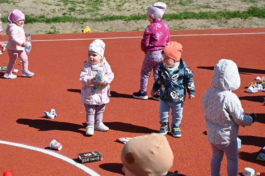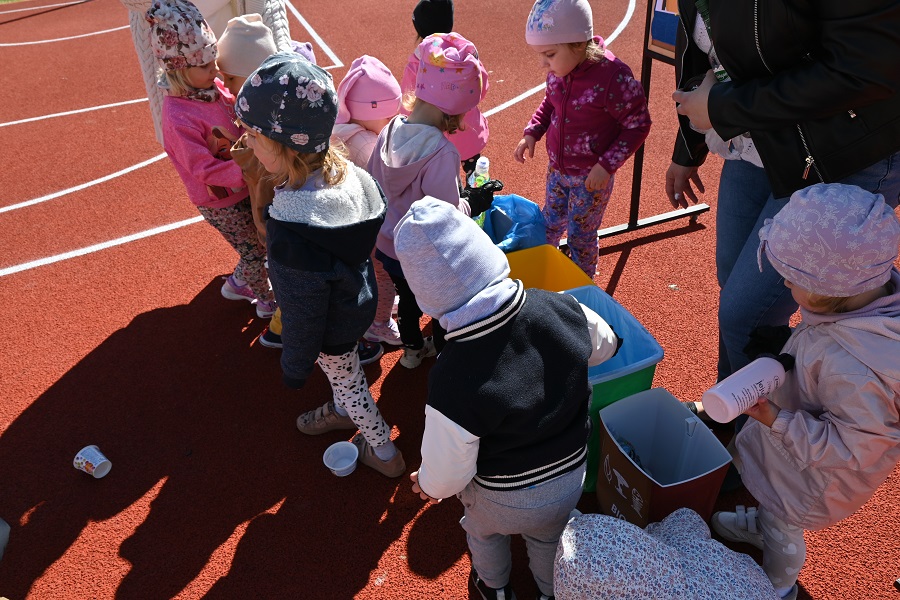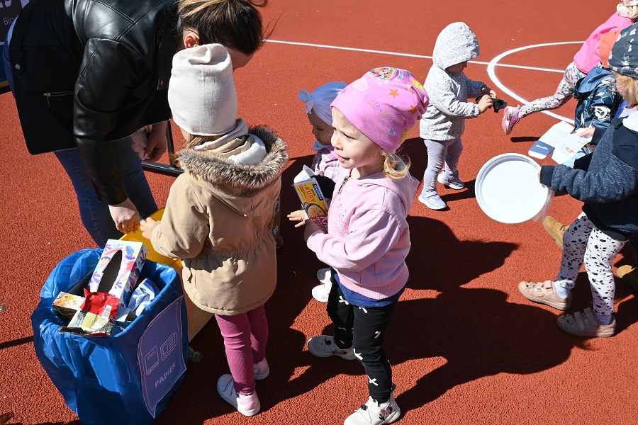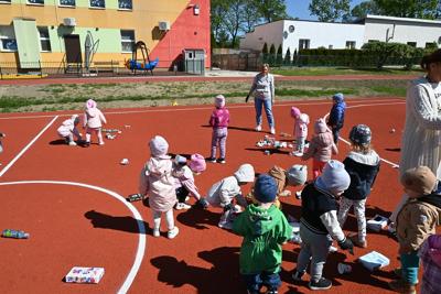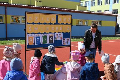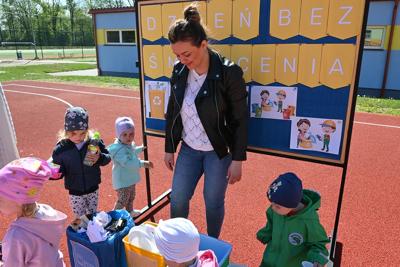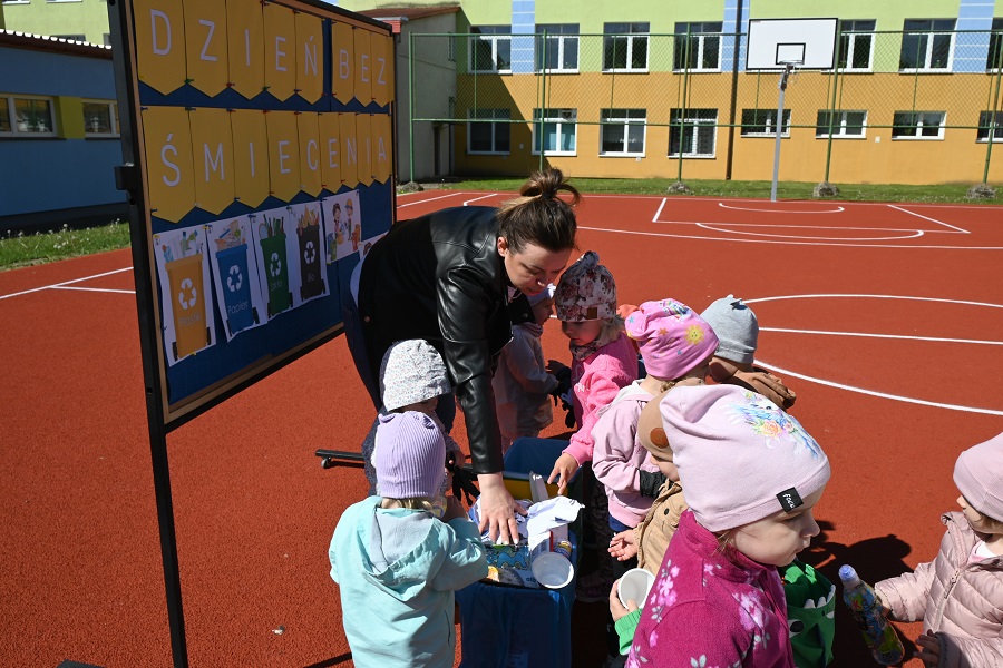 6 maja w naszym klubiku obchodziliśmy Dzień bez śmiecenia. Z tej okazji przygotowane zostały cztery kolorowe kosze na odpady: na papier (niebieski), plastik (żółty), szkło (zielony) oraz bioodpady (brązowy). Dzieci krótko zapoznały się z tym, co można wrzucać do każdego z nich. Ze względów bezpieczeństwa dzieci nie miały kontaktu ze szkłem ani bioodpadami – do wspólnego sprzątania wykorzystano jedynie papier i plastik.Następnie najmłodsze dzieci wyruszyły na szkolne boisko, gdzie czekała na nie zabawa w zbieranie i segregowanie śmieci. Maluchy z dużym zaangażowaniem wyszukiwały papierowe i plastikowe odpady, a następnie wrzucały je do odpowiednich pojemników.Dzieci były bardzo aktywne, radosne i chętnie uczestniczyły w działaniach. To była świetna okazja, by już od najmłodszych lat uczyć je troski o środowisko i zasad prawidłowej segregacji śmieci.