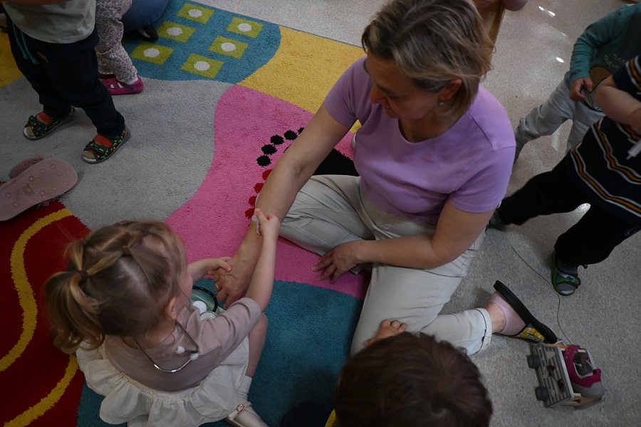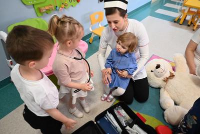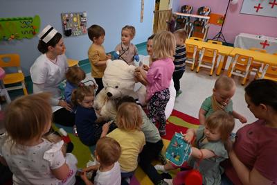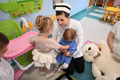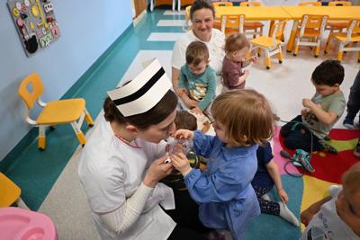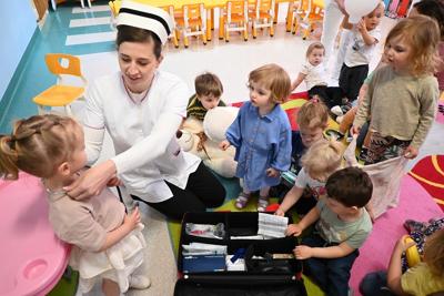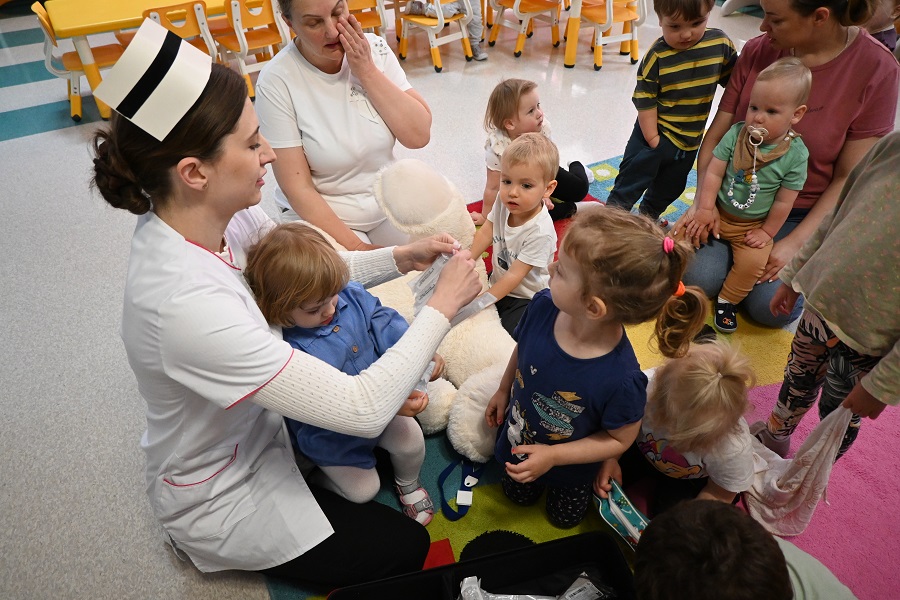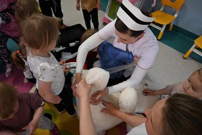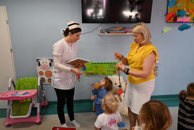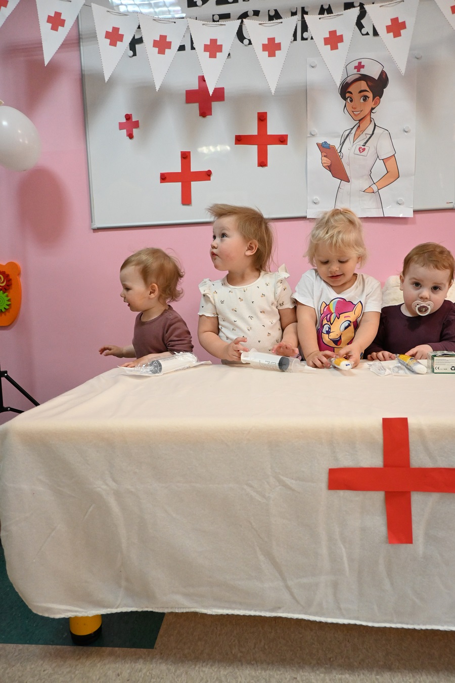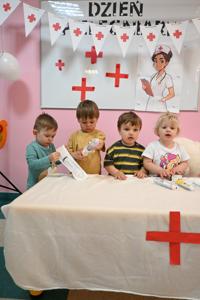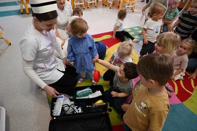 12 maja obchodziliśmy w naszym klubiku Dzień Pielęgniarki. Podczas zajęć dzieci miały okazję dowiedzieć się więcej o trudnym zawodzie pielęgniarki, pokonać lęk przed zabiegami medycznymi, a przede wszystkim wzbogacić i utrwalić swoje wiadomości na temat sposobów dbania o zdrowie.  Maluszki dowiedziały się co znajduje się w tajemniczej torbie, którą przyniósł ze sobą gość. Pani pielęgniarka zademonstrowała nam niektóre proste zabiegi np. założenie opatrunku, a nawet mierzenie ciśnienia. Dzieci ćwiczyły na dzielnym pacjencie jakim był misio. Nie obeszło się bez zrobienia zastrzyku, pacjent był naprawdę dzielny znosił wszystkie zabiegi i opatrunki. Na zakończenie klubowicze dostały medal Dzielnego Pacjenta. A nasz gość został obdarowany „Dyplomem Przyjaciela Dzieci” za udział w spotkaniu z dziećmi i przedstawienie swojej specyfiki pracy. Bardzo serdecznie dziękujemy. Wierzymy, że wizyta w ośrodku zdrowia w razie konieczności naszych podopiecznych, będzie przebiegać bez większego stresu i płaczu.   ♥️