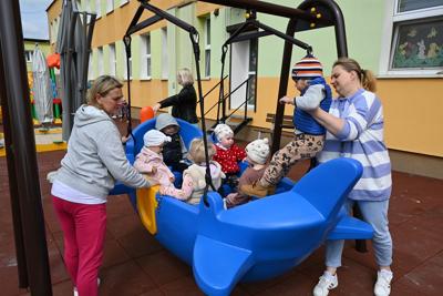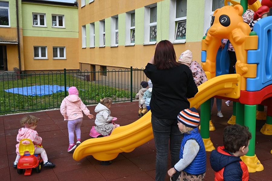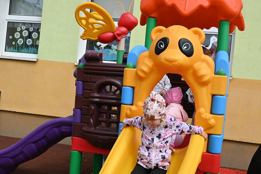 Było dużo śmiechu, biegania i wspólnej zabawy. Dzieci świetnie się bawiły, jedne od razu ruszyły na zjeżdżalnie, inne nie chciały zejść z hustawki. Widać było, że ten pierwszy raz na placu zabaw był dla nich naprawdę wyjątkowy – i na pewno długo go nie zapomną.