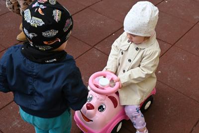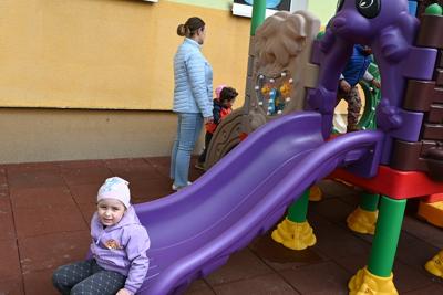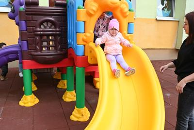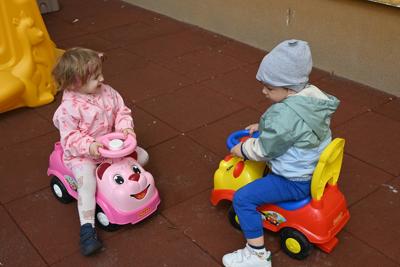Dzieci skorzystały z pieknej pogody i wyszły na świeże powietrze, aby po raz pierwszy mogły pobawić się na swoim nowym placu zabaw. Już od samego wyjścia było widać, jak bardzo są podekscytowane, z radością biegały, zaglądały w każdy zakamarek i sprawdzały, co nowego czeka na nie do odkrycia. Zjeżdżalnie, huśtawki czy inne zabawki– wszystko było dla nich nowe i fascynujące.