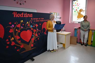 Kolejnym punktem uroczystości było indywidualne wyczytywanie każdego dziecka – każde z nich, wraz z rodzicami, otrzymało przygotowany z tej okazji upominek. To był bardzo ciepły i symboliczny moment, który podkreślił, jak ważna jest każda rodzina.