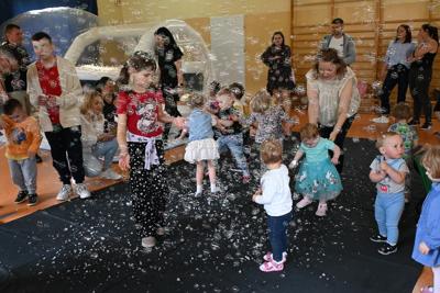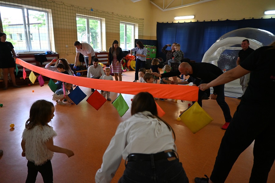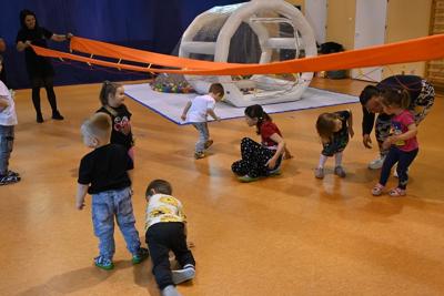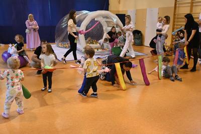 Po części oficjalnej wszyscy udaliśmy się na salę gimnastyczną, gdzie czekały na dzieci prawdziwe atrakcje. Panie animatorki zadbały o dobrą zabawę – nie zabrakło tańców, zabaw ruchowych i kolorowych niespodzianek. Był też słodki poczęstunek przygotowany przez rodziców, który umilił wszystkim wspólne spędzanie czasu.