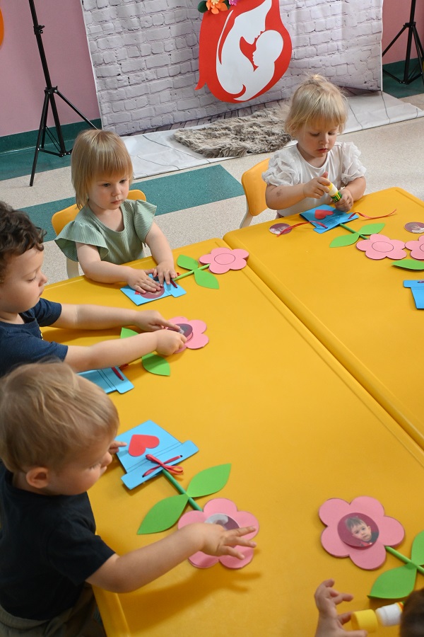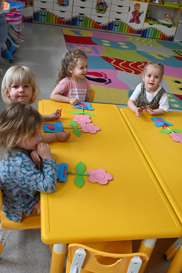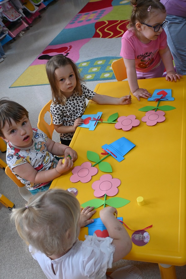 Z okazji Dnia Mamy dzieci z naszego klubiku przygotowały wyjątkowy upominek – piękne kwiaty wykonane z kolorowego papieru. Każdy kwiatek został ozdobiony zdjęciem dziecka, dzięki czemu stał się osobistym i wzruszającym prezentem. Mali artyści z wielkim zaangażowaniem wycinali, kleili i dekorowali swoje prace, wkładając w nie całe serce. Gotowe kwiaty dzieci z dumą zabrały do domu i wręczyły swoim mamom, sprawiając im wiele radości i wzruszenia. To był wyjątkowy sposób na okazanie miłości i wdzięczności najważniejszym kobietom w ich życiu.