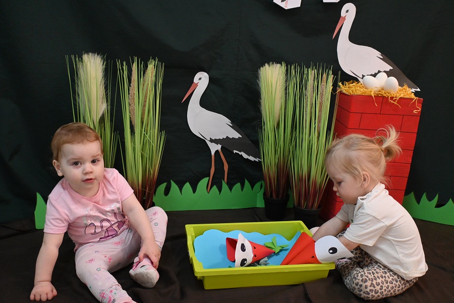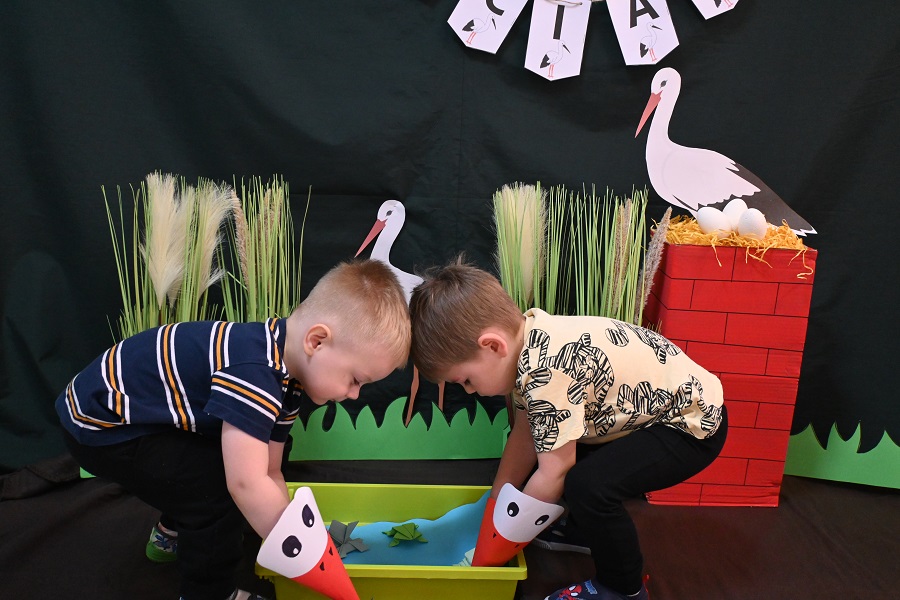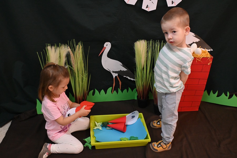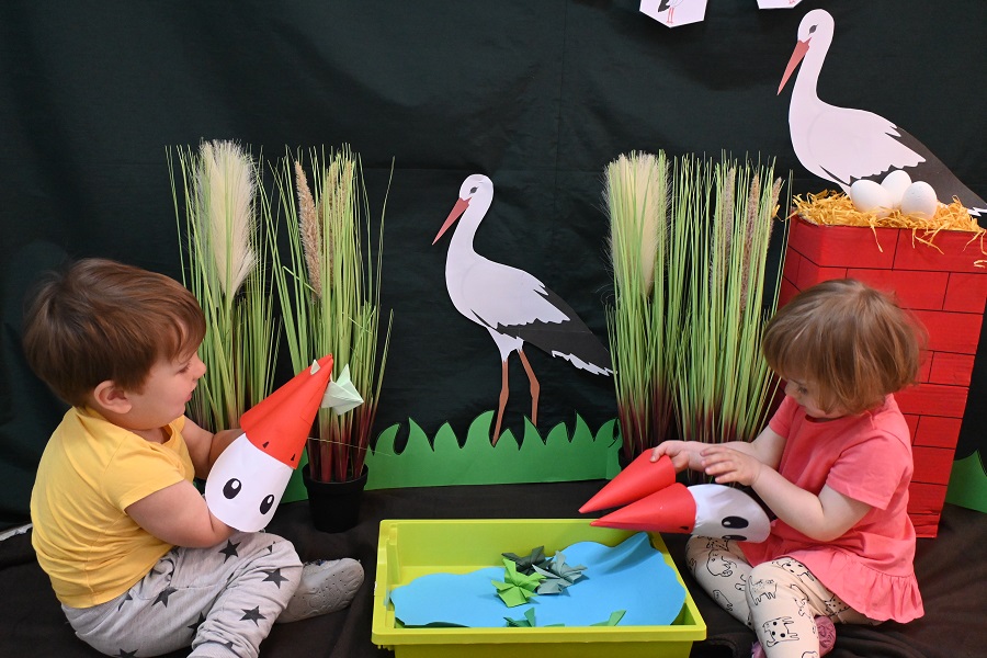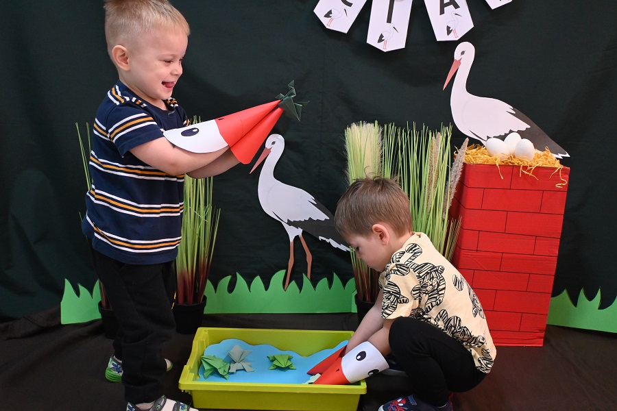 Dziś w naszym klubiku świętowaliśmy Dzień Bociana – ptaka, który jest jednym z symboli polskiej przyrody. Dzieci poznały ciekawostki na temat życia bocianów: dowiedziały się, gdzie mieszkają, co jedzą oraz dlaczego odlatują na zimę do ciepłych krajów. Podczas zajęć oglądaliśmy ilustracje, które przybliżyły dzieciom wygląd i zwyczaje tych pięknych ptaków. Nie zabrakło również części plastycznej – mali artyści wykonali urocze bociany z papieru. Dzień Bociana był doskonałą okazją do rozmów o ochronie przyrody i rozwijania w dzieciach miłości do zwierząt.