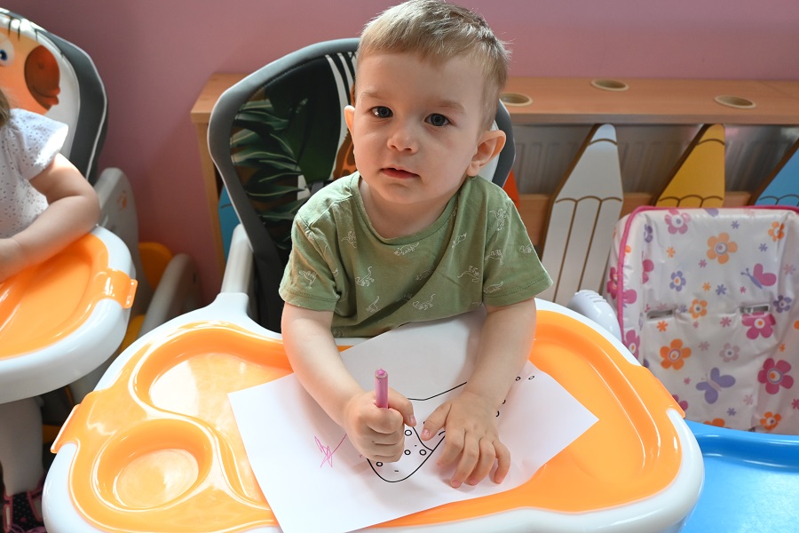 Na zakończenie dzieci pokolorowały kolorowankę z motywem chemii, przedstawiającą karafkę – z wybuchającym wulkanem.
