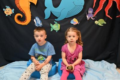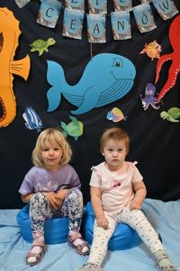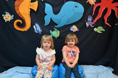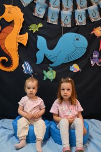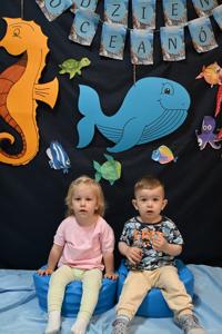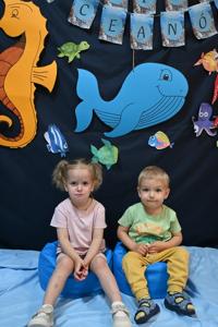 Na zakończenie każde dziecko mogło zrobić sobie pamiątkowe zdjęcie na tle morskiej dekoracji. Tło przedstawiało urocze ilustracje: dużego wieloryba, konika morskiego, ośmiornicę i małe rybki.