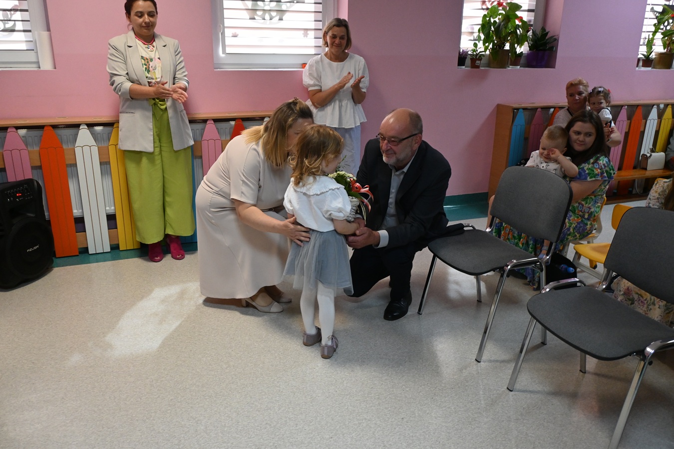 Kierownik podziękowała również rodzicom za zaufanie i wsparcie. Jednak największe podziękowania były dla najmłodszych bohaterów tego dnia czyli wszystkich dzieci uczęszczających do ,,Radosnej Krainy”. To właśnie dzieci wnoszą radość, uśmiech i pozytywną energię. Ich ciekawość świata, pierwsze słowa, kroki sprawiają, że codzienność w pracy Klubu jest pełna magii i niespodzianek. To radość i entuzjazm dzieci są największą nagrodą i motywacją do działania. Podziękowania popłynęły w kierunku opiekunek, które każdego dnia dają całe swoje serce, wyrozumiałość, ciepłe słowo, uśmiech i słodki gest.