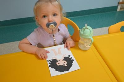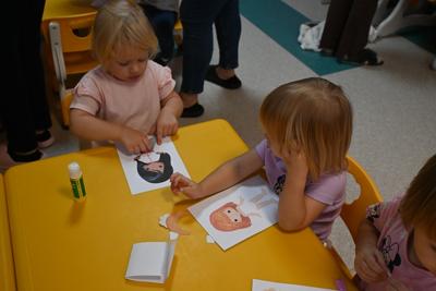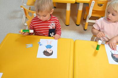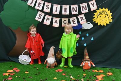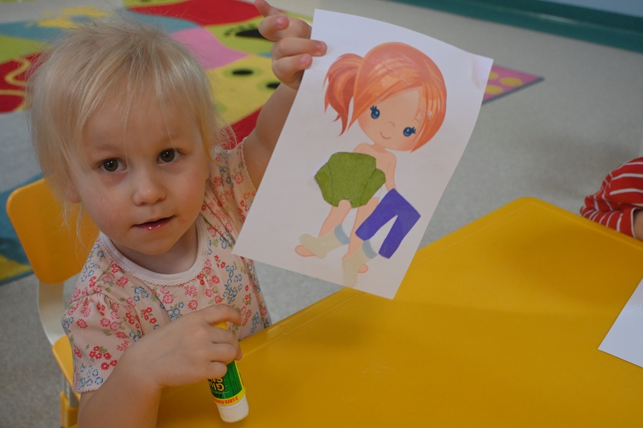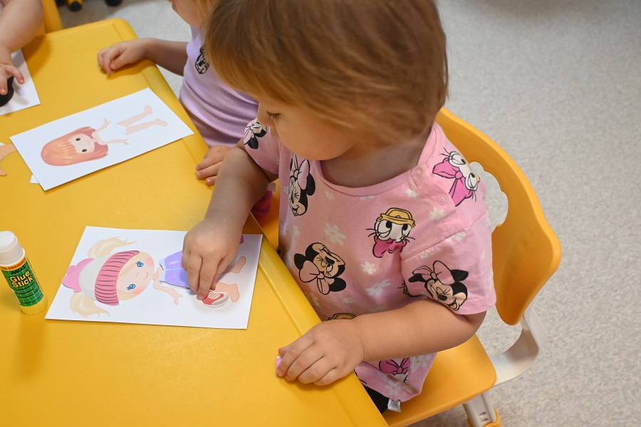 Po udanym spacerze czekała na nie twórcza zabawa – przyklejanie jesiennych ubranek na lalki.