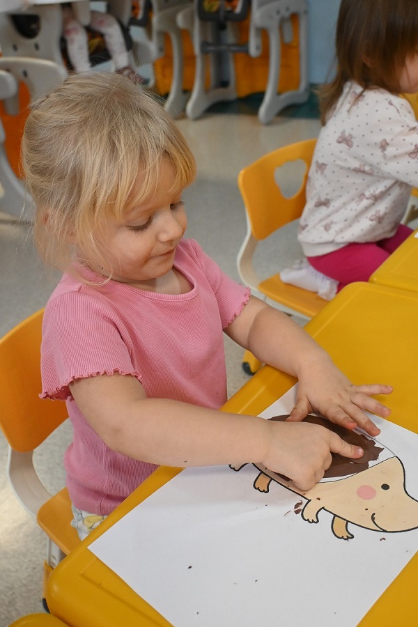 W naszym klubiku obchodziliśmy radosny Dzień Jeża, podczas którego dzieci rozwijały swoją kreatywność i sprawność manualną. Maluchy wyklejały rysunek jeża plasteliną, a jego kolce tworzyły z ryżu preparowanego, co sprawiło im dużo frajdy i pozwoliło ćwiczyć precyzyjne ruchy palców.