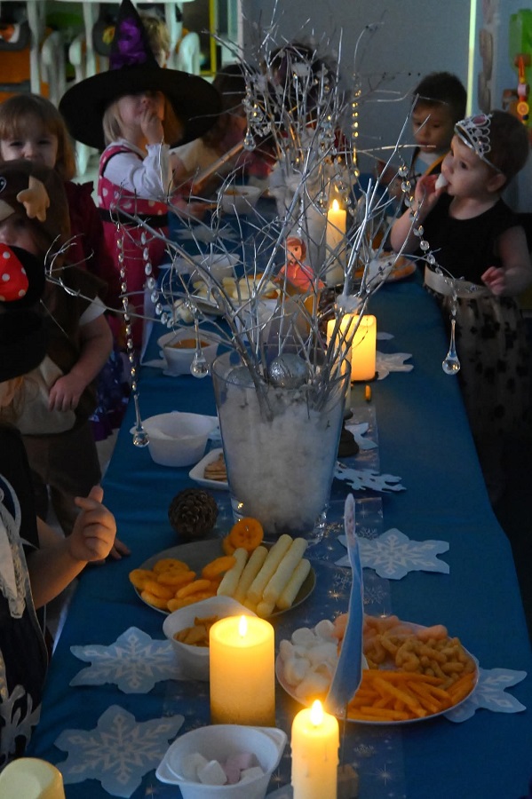 Dużym zachwytem cieszył się także stół z przekąskami, udekorowany w biało-niebieskiej kolorystyce, pełen błyszczących elementów przypominających lodowe kryształki. Dzięki temu każdy mógł poczuć się jak na prawdziwym balu w Arendelle.