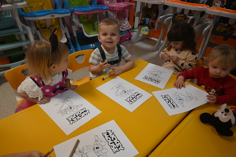 Dziś w naszym klubie dziecięcym królowała Myszka Miki. Dzieci przyniosły swoje ulubione zabawki, które towarzyszyły im podczas wspólnych zabaw.  Nie zabrakło również kolorowych prac plastycznych. To był wyjątkowy dzień pełen pozytywnej energii i dziecięcej radości. Nie zabrakło czasu na poczęstunek, swobodną zabawę oraz chwilę relaksu.
