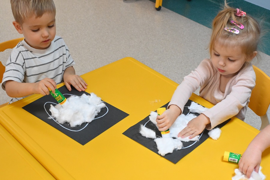 W naszym Klubiku maluszki świętowały dziś Dzień Mycia Zębów, poznając tajemnice zdrowego i pięknego uśmiechu. Dzieci uczyły się, jak prawidłowo trzymać szczoteczkę, jak wykonywać ruchy góra–dół oraz dlaczego codzienna higiena jamy ustnej jest tak ważna. Nie zabrakło również kreatywnej zabawy — maluchy wykonały pracę plastyczną, ozdabiając papierowe ząbki mięciutką białą watą, dzięki czemu każdy stworzył swój wyjątkowy „uśmiech”, bo ząbki to od najmłodszych lat to właśnie wspomniany uśmiech, który rośnie razem z dzieckiem.